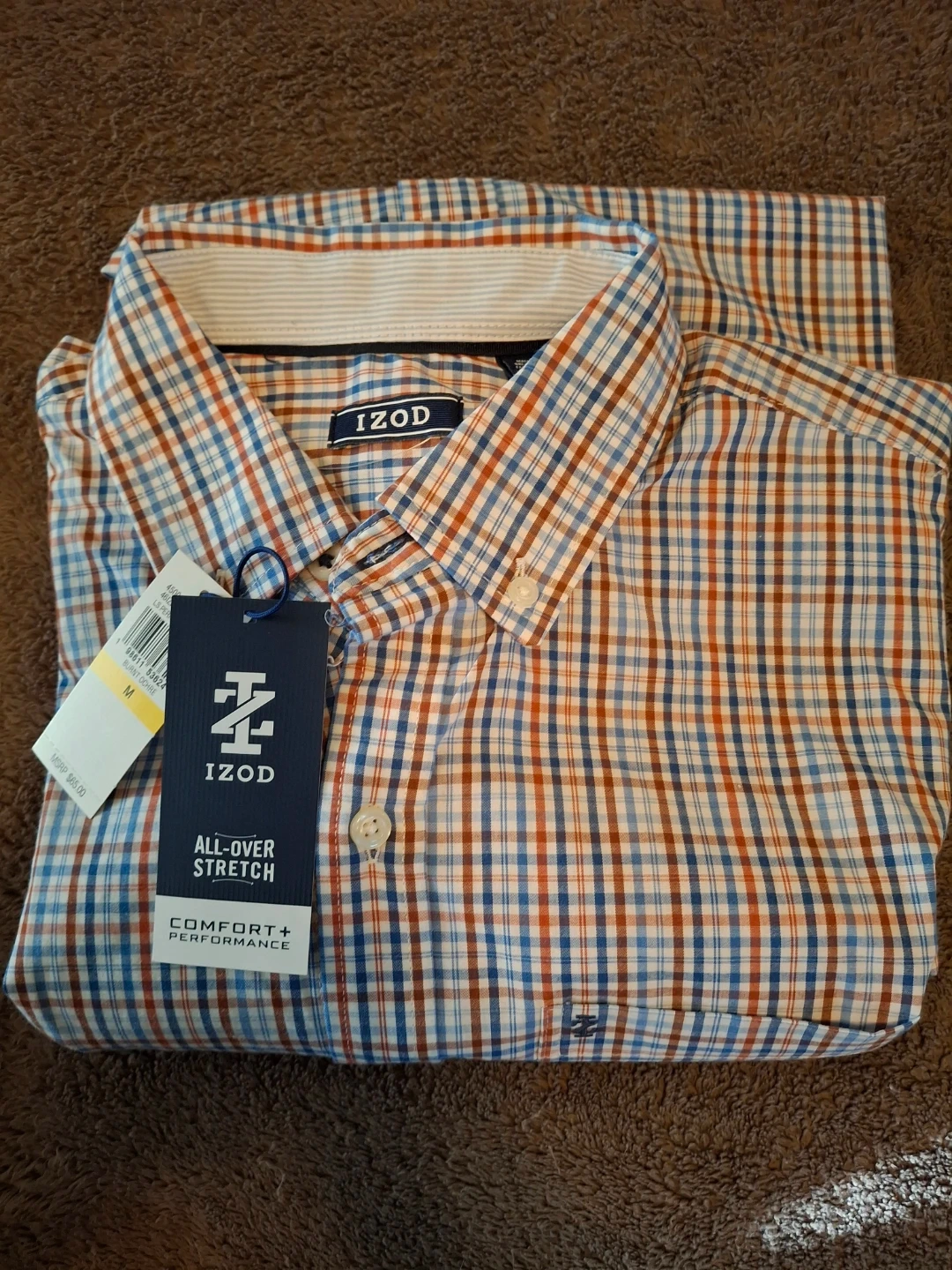 Selling a brand new IZOD All-Over Stretch shirt in size M! The shirt features a comfortable and performance-oriented design with all-over stretch for a great fit. The original price was $65