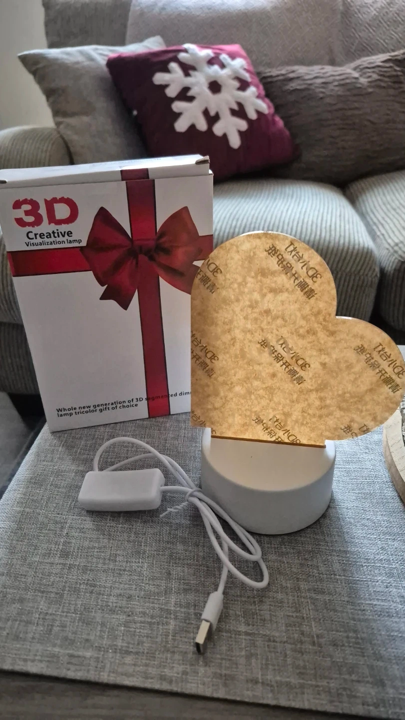 🧡 Selling a brand new 3D Creative Visualization Lamp in a heart shape! It's still in its original box and comes with all the components. This lamp is a whole new generation of 3D segmented dimension and a tricolor gift of choice! Perfect for adding a warm touch to any room. There is a protective cover over the etching so that's why you are viewing it backwards.