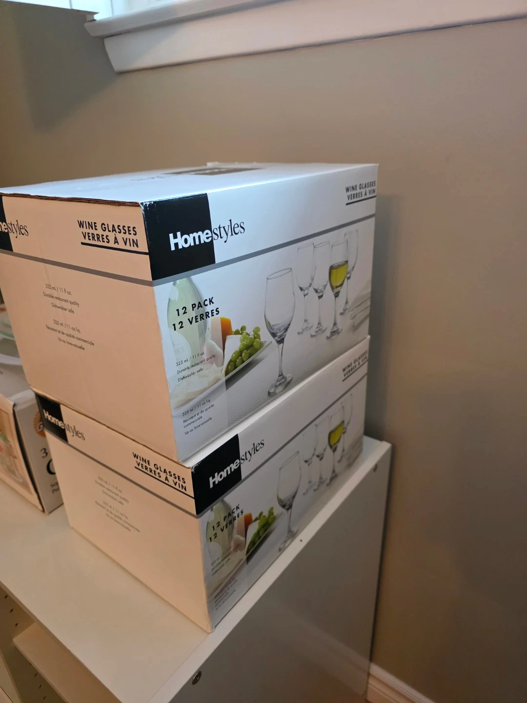 Selling a 12-pack of Homestyles wine glasses! They are durable and dishwasher safe. Each glass holds 325 ml / 11 fl oz. BNIB.
