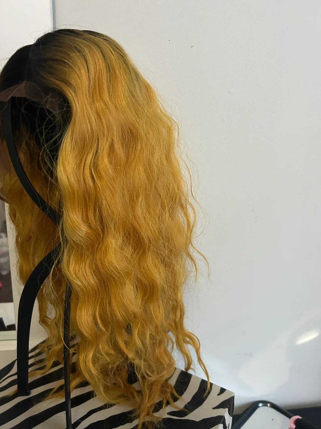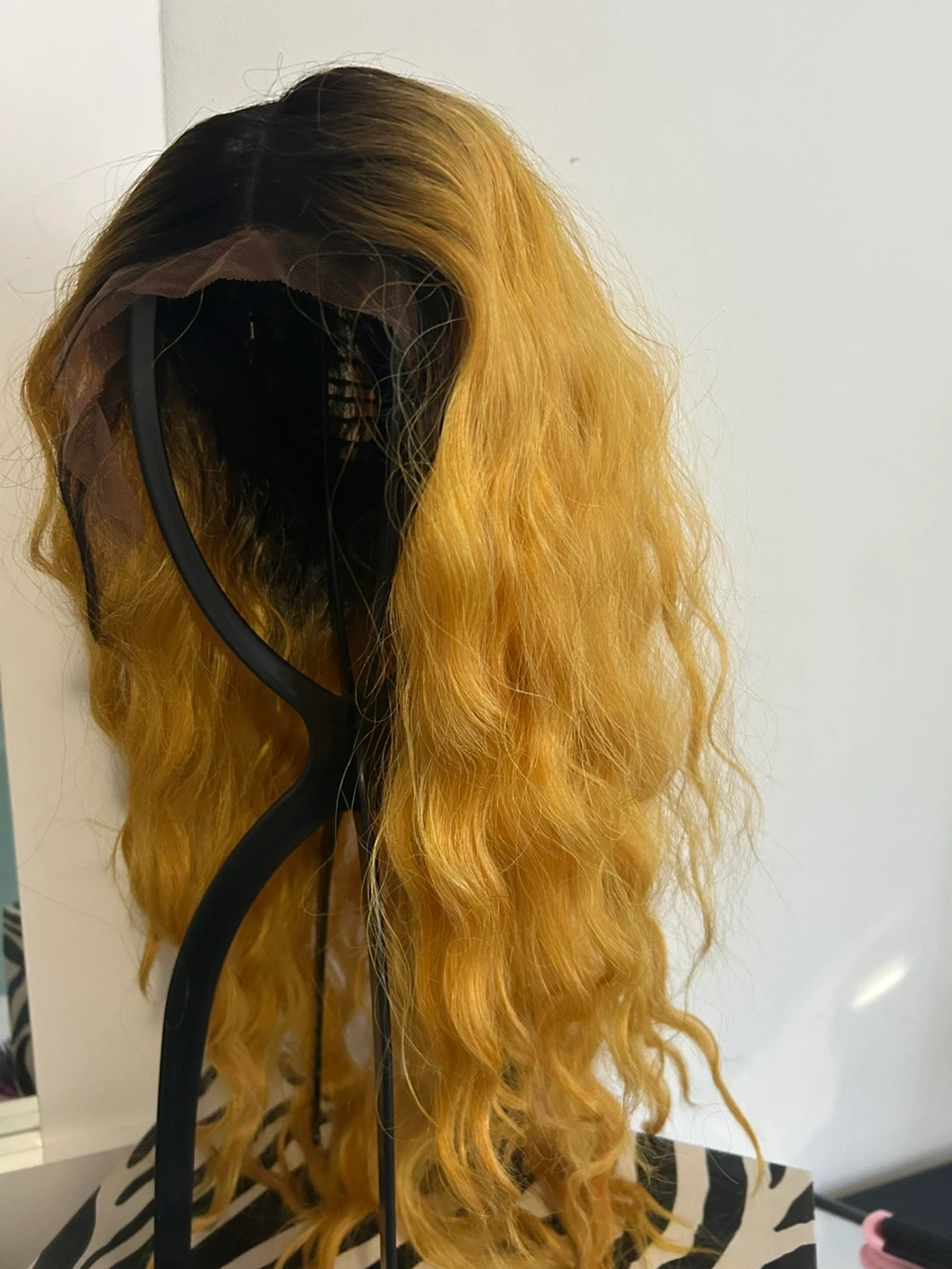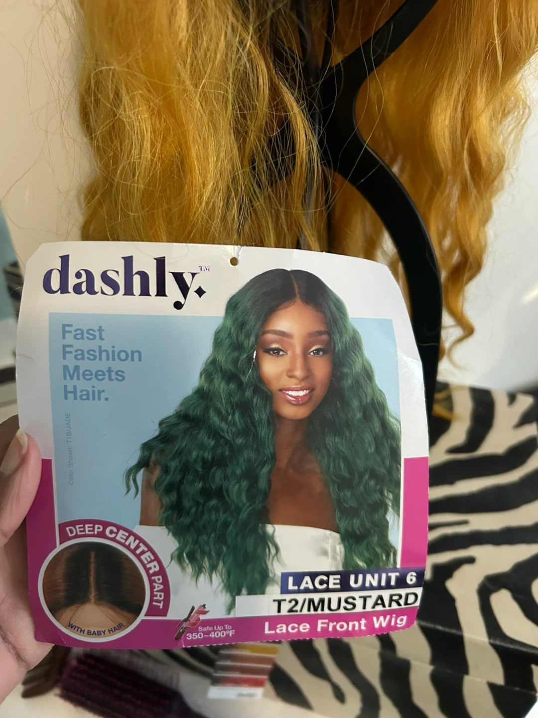 Brand new synthetic Dashly Lace Unit 6 lace front wig in T2/Mustard colour. deep center part with baby hair. Has a slight rip in front of lace by the right ear.