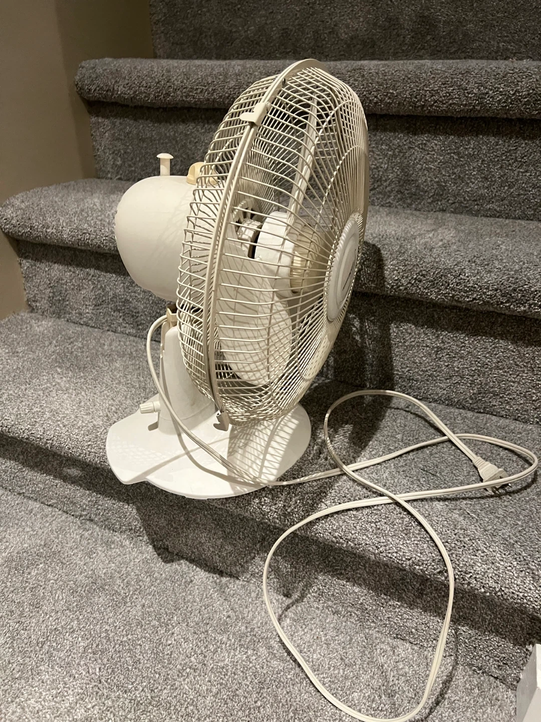 Selling a gently used white table fan. It has adjustable speed settings from low to high. Perfect for keeping cool on warm days!