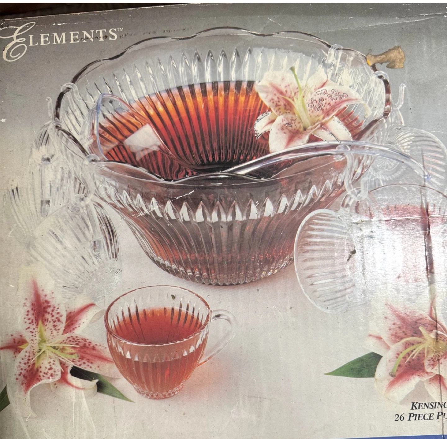 Selling a beautiful Elements Kensington 26-piece punch bowl set! This set comes with everything you need for a festive gathering. The set is in excellent condition and includes the punch bowl, cups, and ladle. Perfect for parties and special occasions!