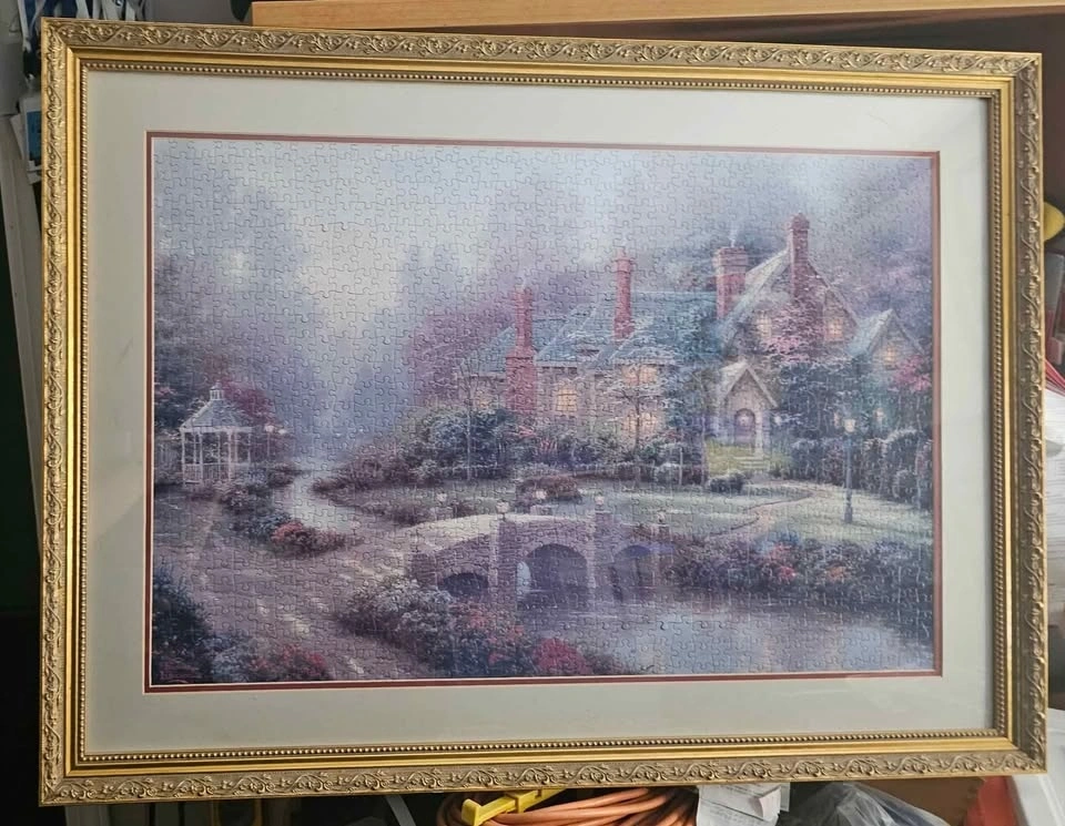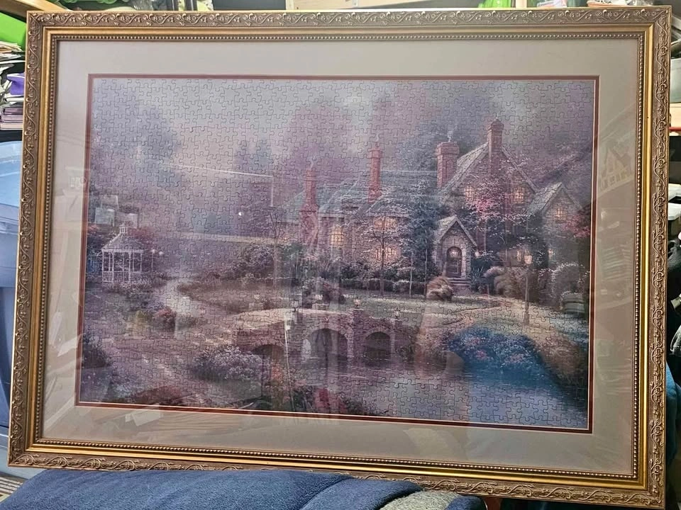 If you are a fan of Thomas Kinkade art and a puzzle fan, then you will love this framed picture. I paid close to $150 to have it framed. Used to be in living room. Dimensions are 36 1/2" wide by 26 1/2" high. Or best offer.