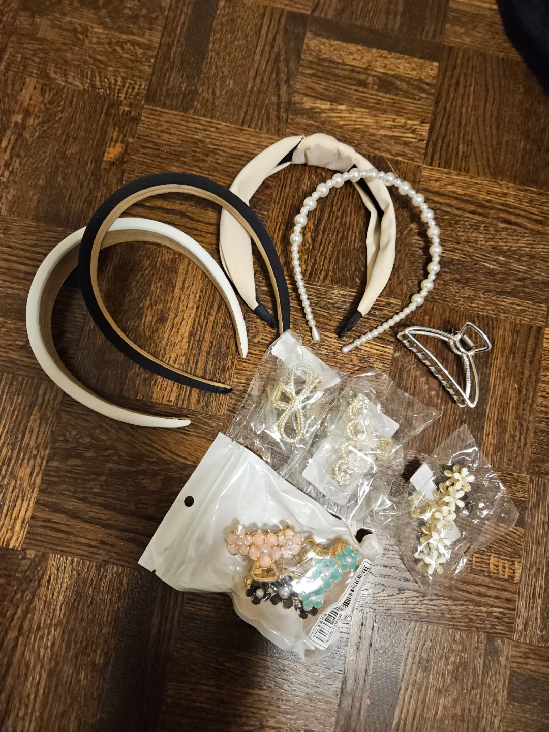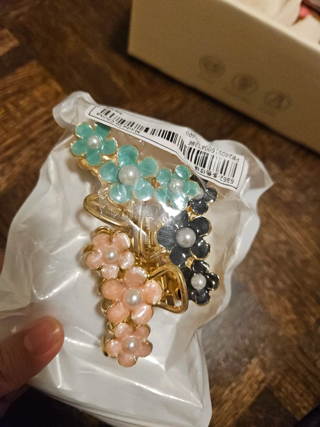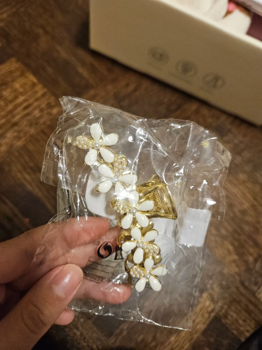 Selling a set of four brand new hair claw clips! These are so cute and perfect for adding a little sparkle to your hair. The set includes flower designs with pearl accents and rhinestone embellished clips. They're still in their original packaging!