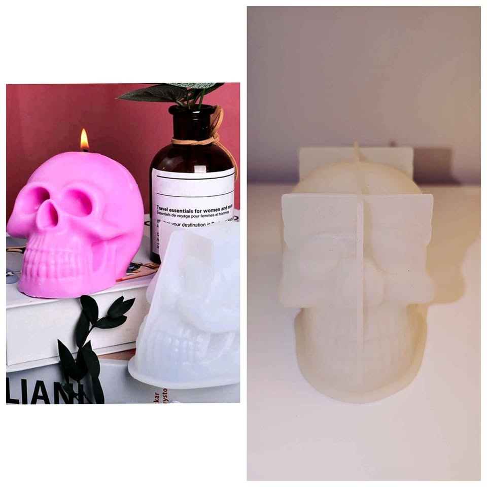 Skull shaped silicone mold for candle and soap making.
