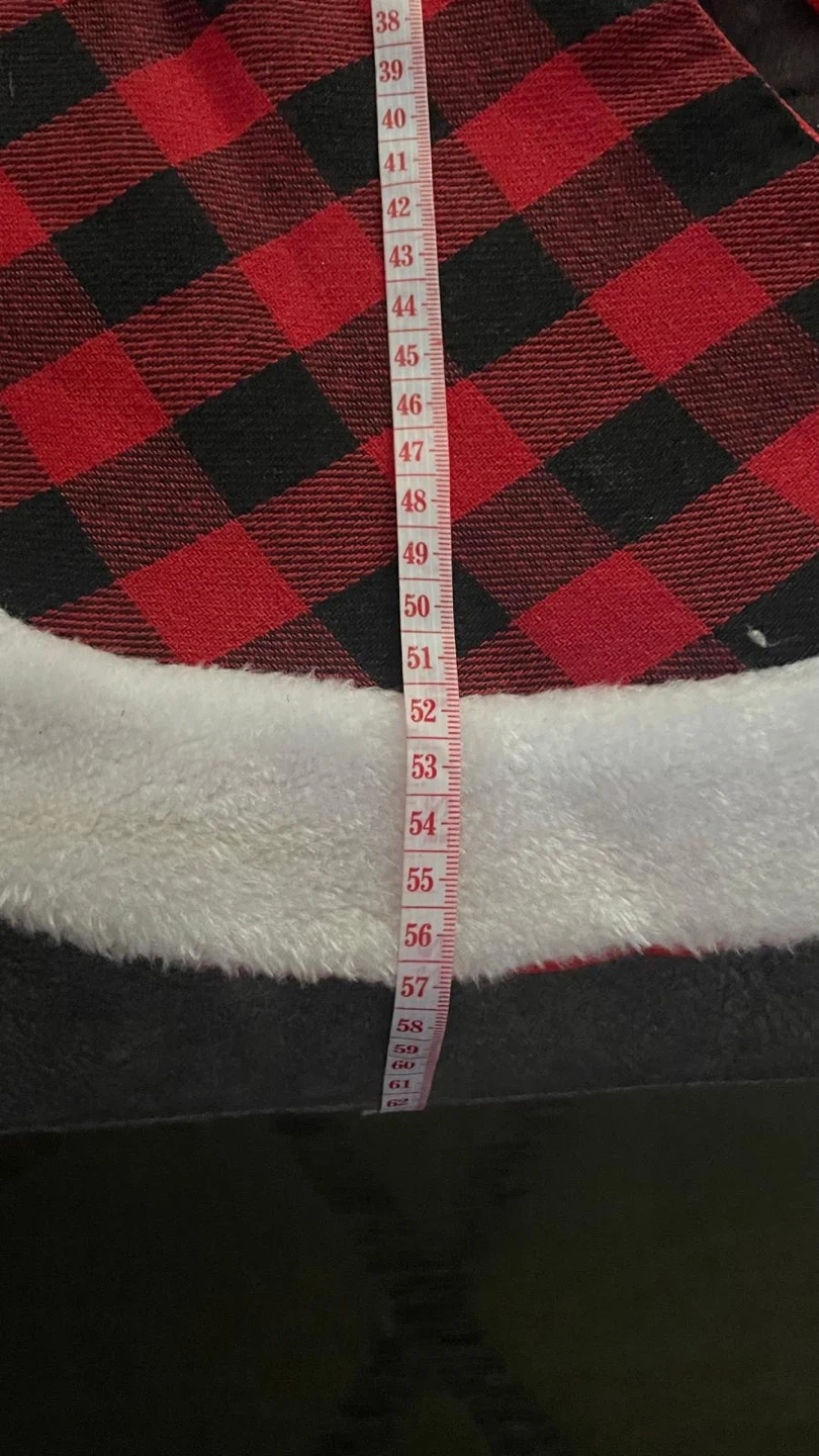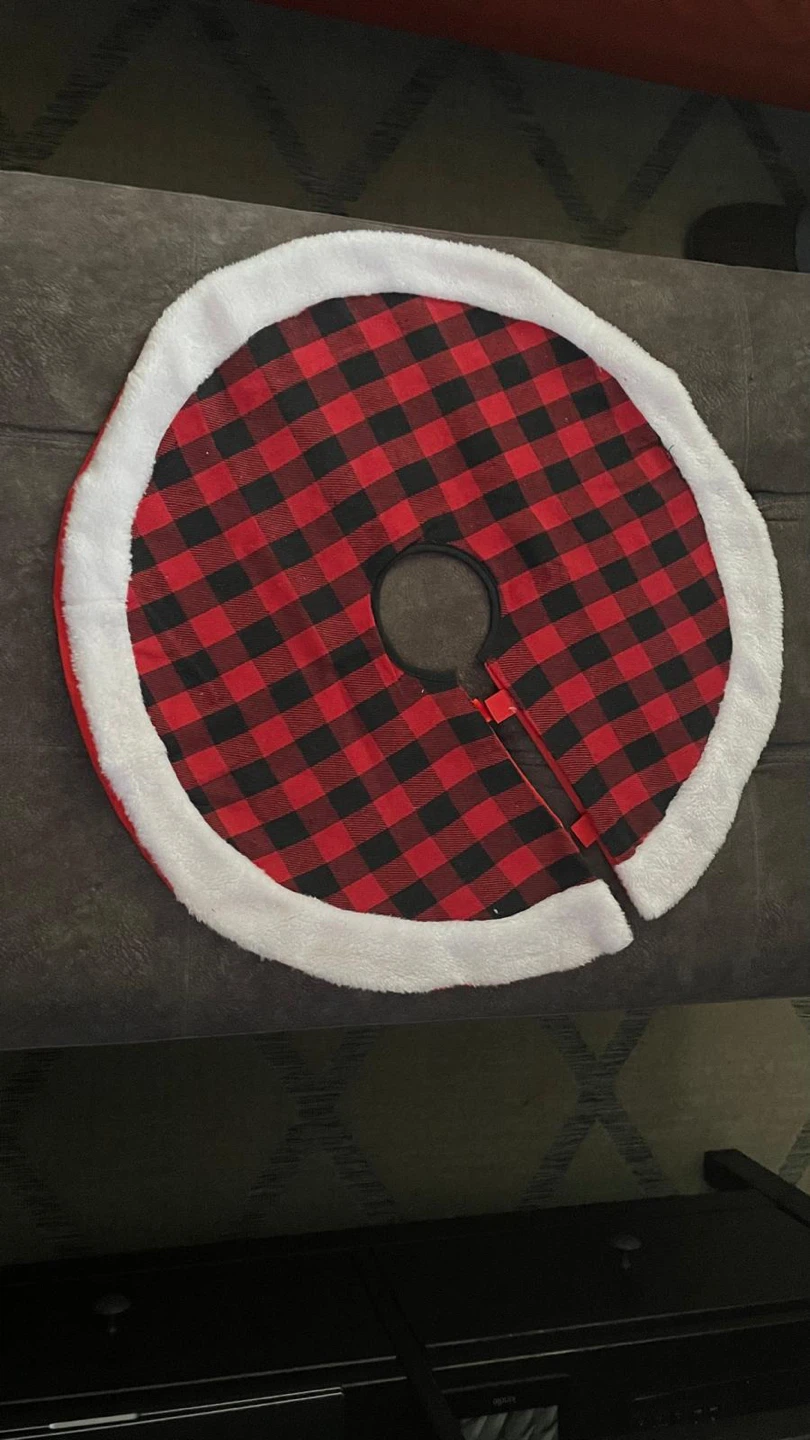 Christmas red and black plaid tree skirt! It measures around 56 centimetres in diameter. I bought it but is too small for a big tree