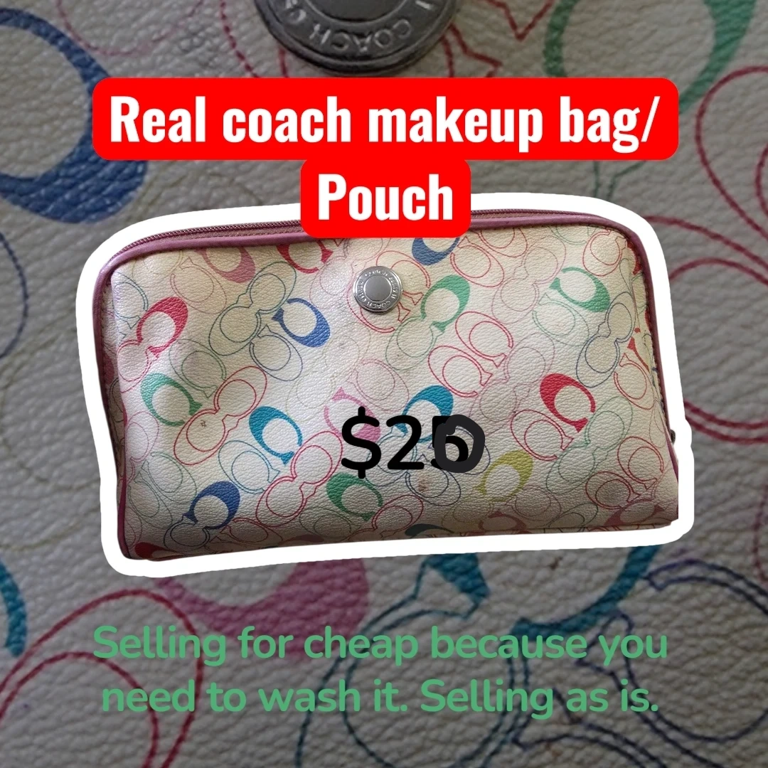 Selling a Coach makeup bag/pouch. It's got a colourful design and a zipper closure. It's selling as is, and could use a wash! Price is firm bc this still goes for $90 but I am selling for $20