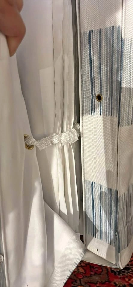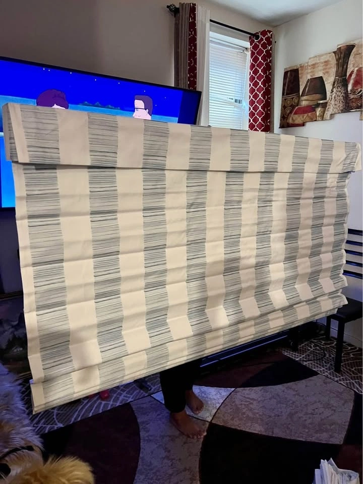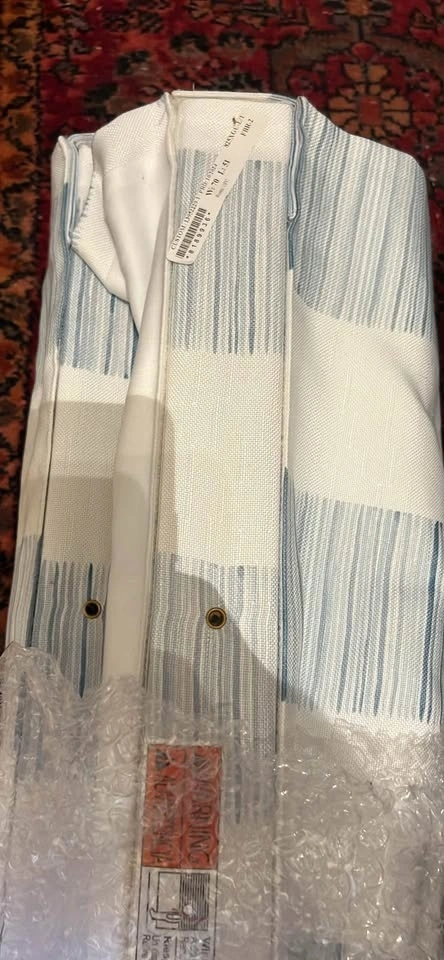 Two new - never used - The ShadeStore blue and white Pleated Roman Shade light blocking fabric blinds/ drapes. 1) 70w x 51L & 2) 65w x 50L. Retail from around $400. Asking $150. Must go. Yonkers pickup.