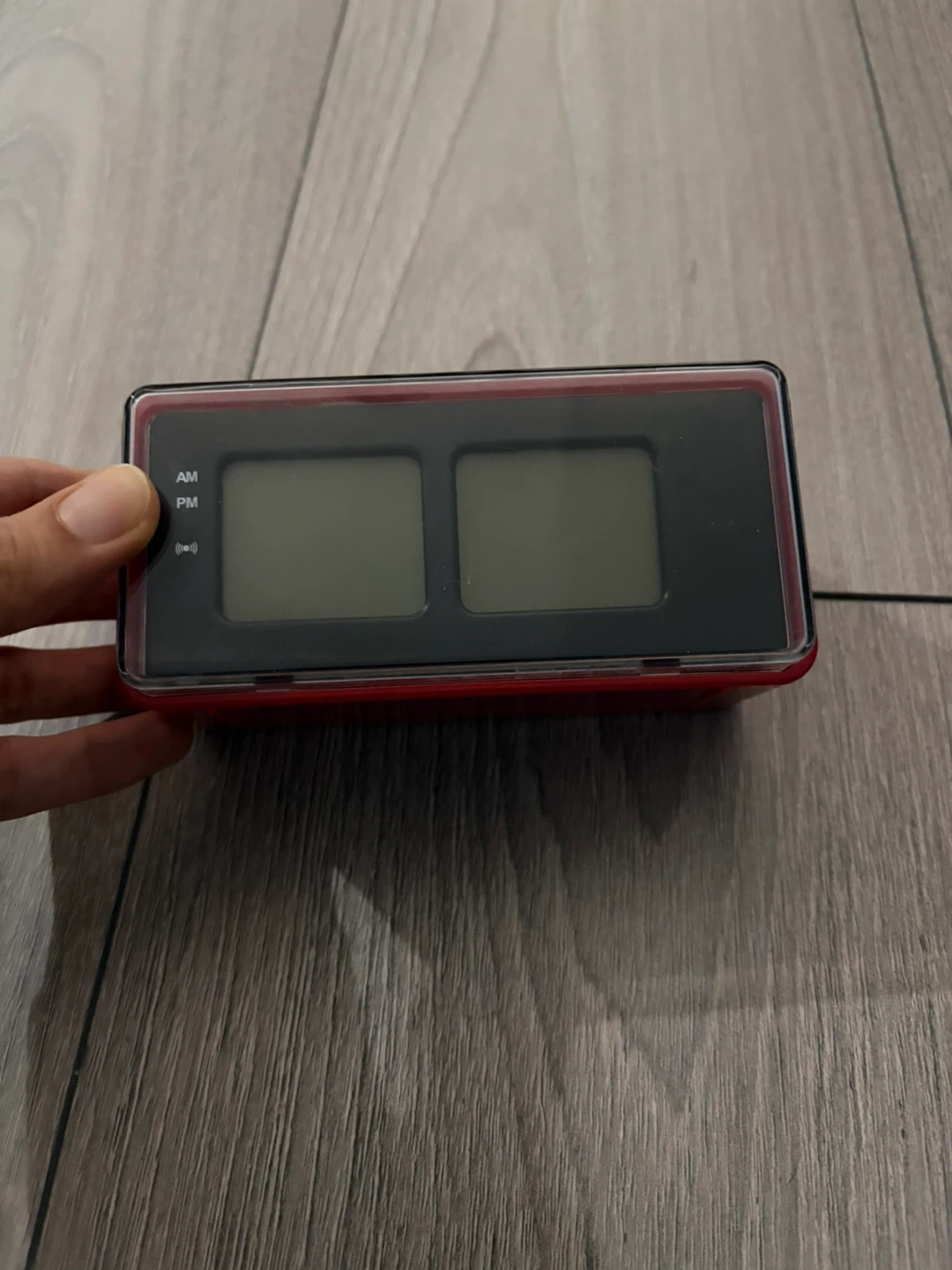 Selling a red digital alarm clock! It's in great condition and ready to help you wake up on time. It has a clear display and easy-to-use settings.