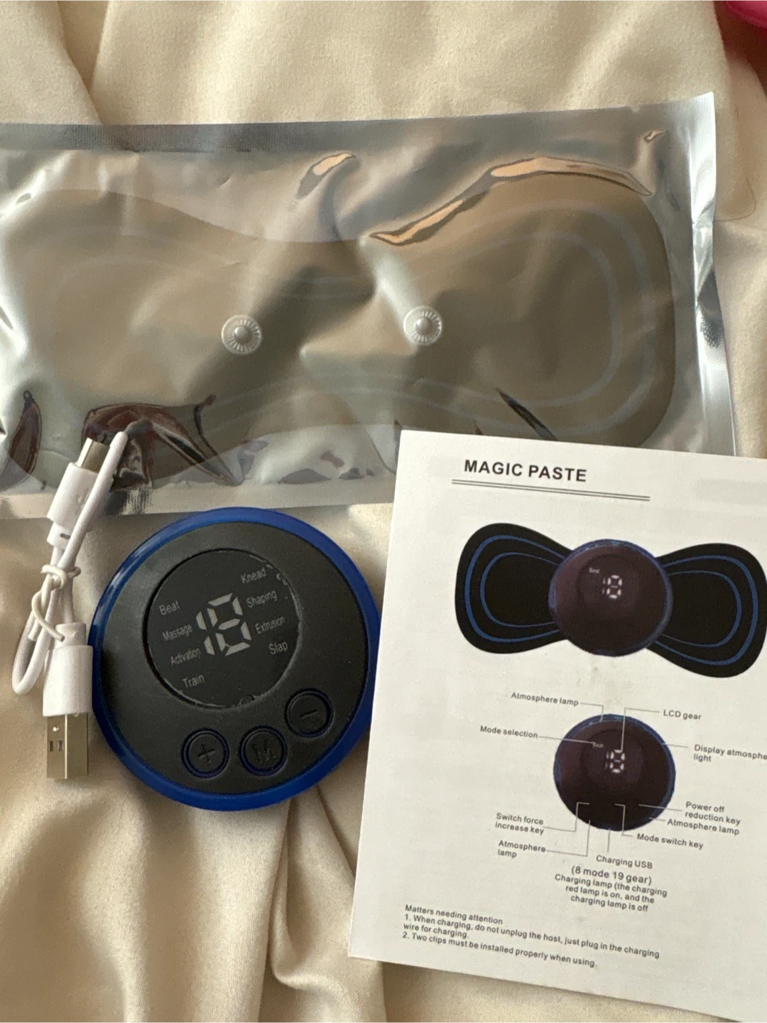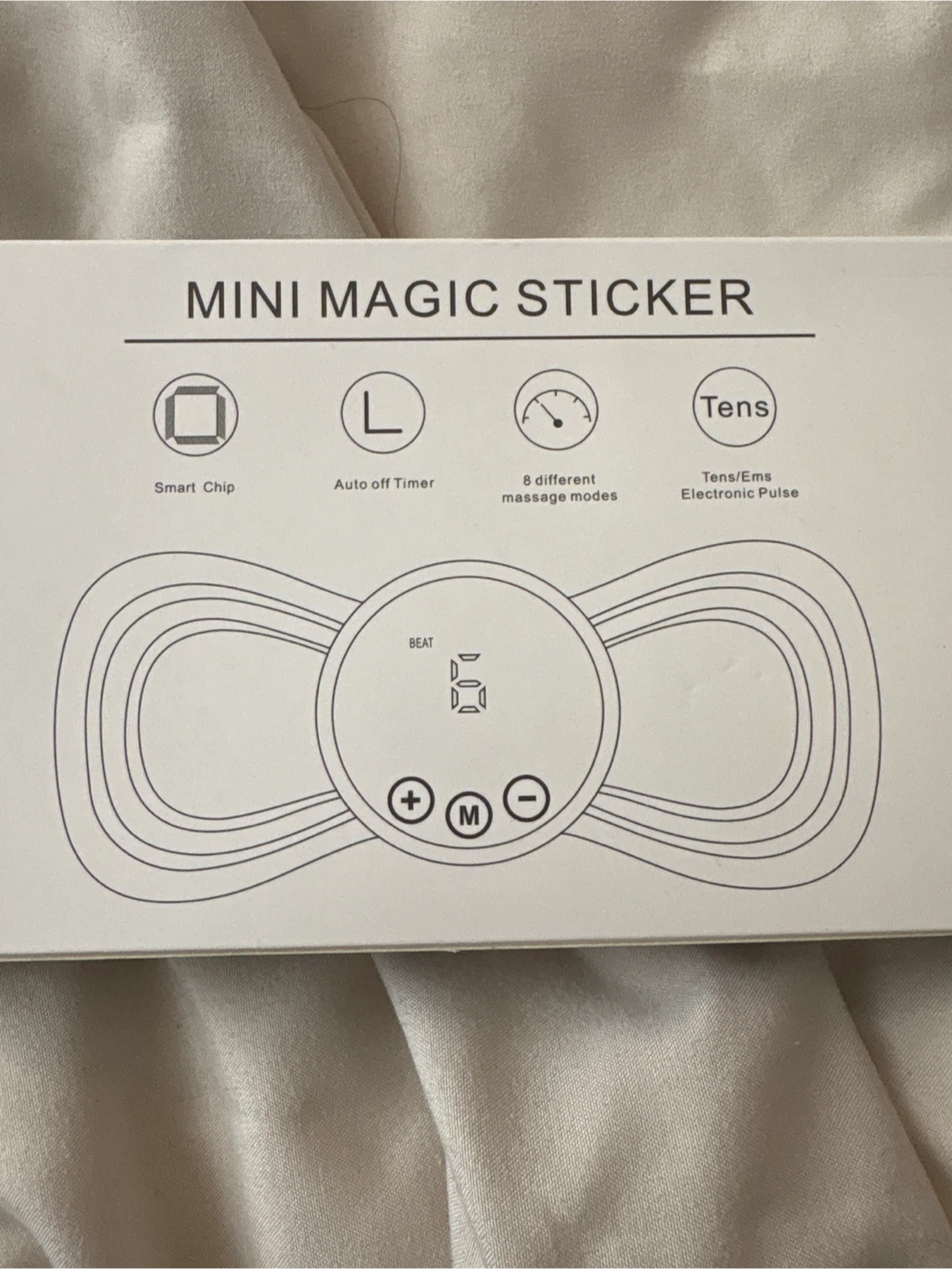 I'm selling a Mini Magic Sticker massager! It has 8 different massage modes, and uses Tens/Ems Electronic Pulse technology. It also features an auto-off timer. Comes with charging USB cable and replacement gel pads
