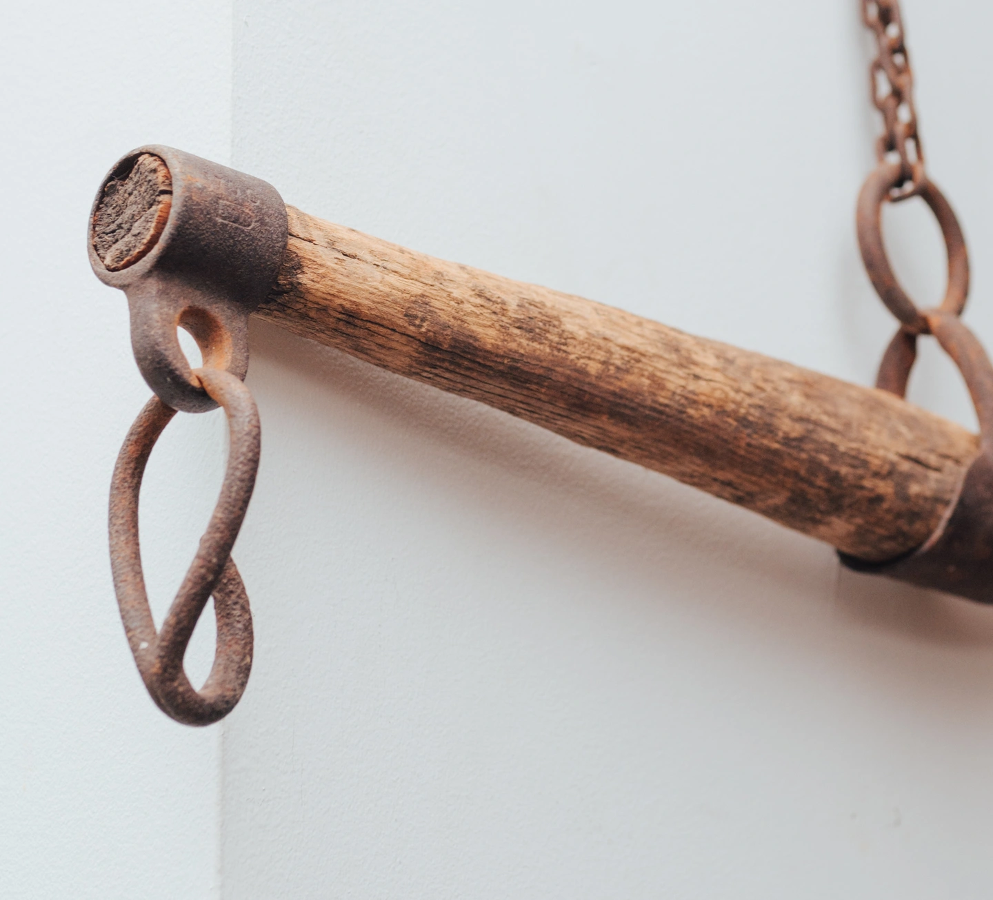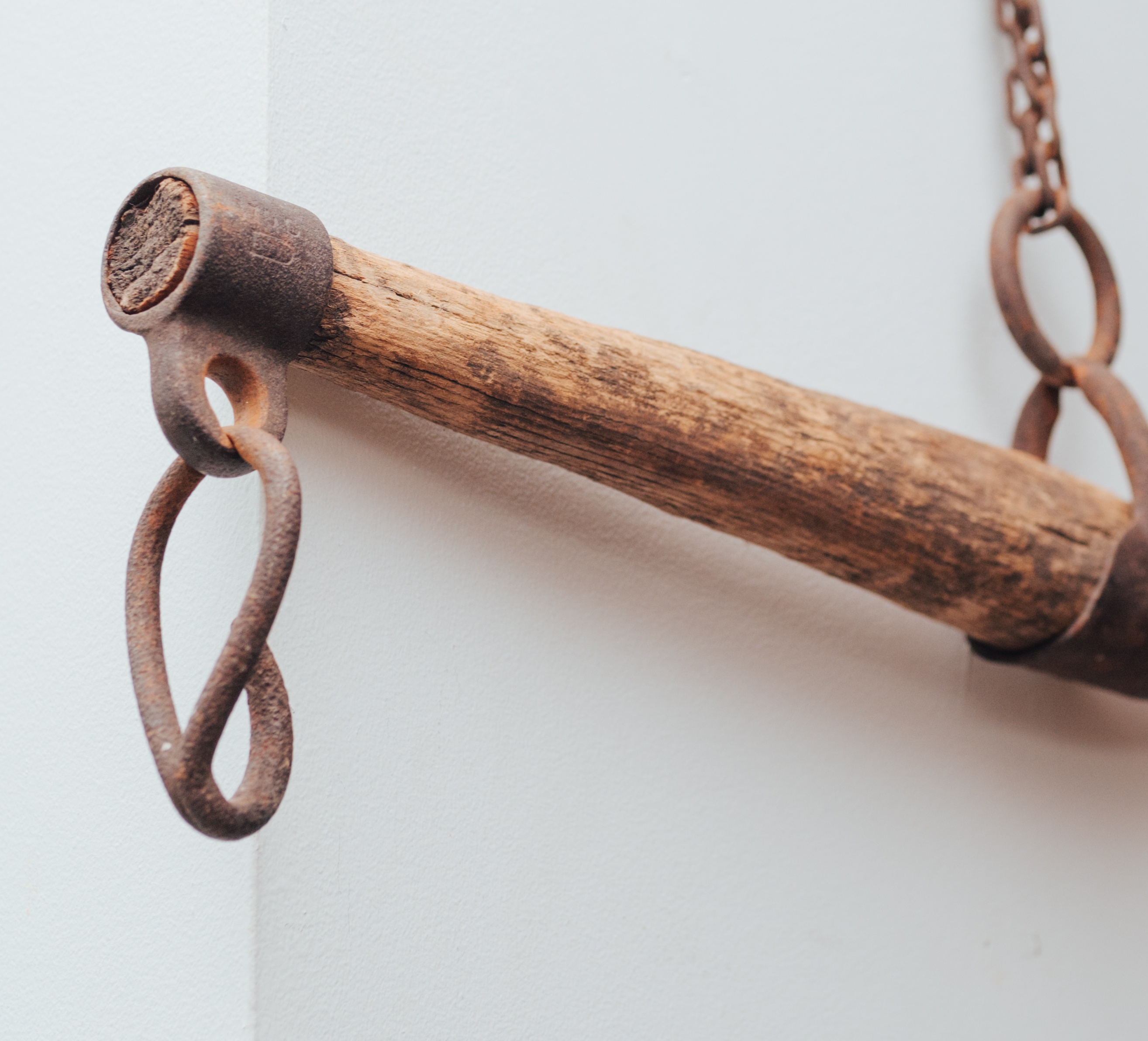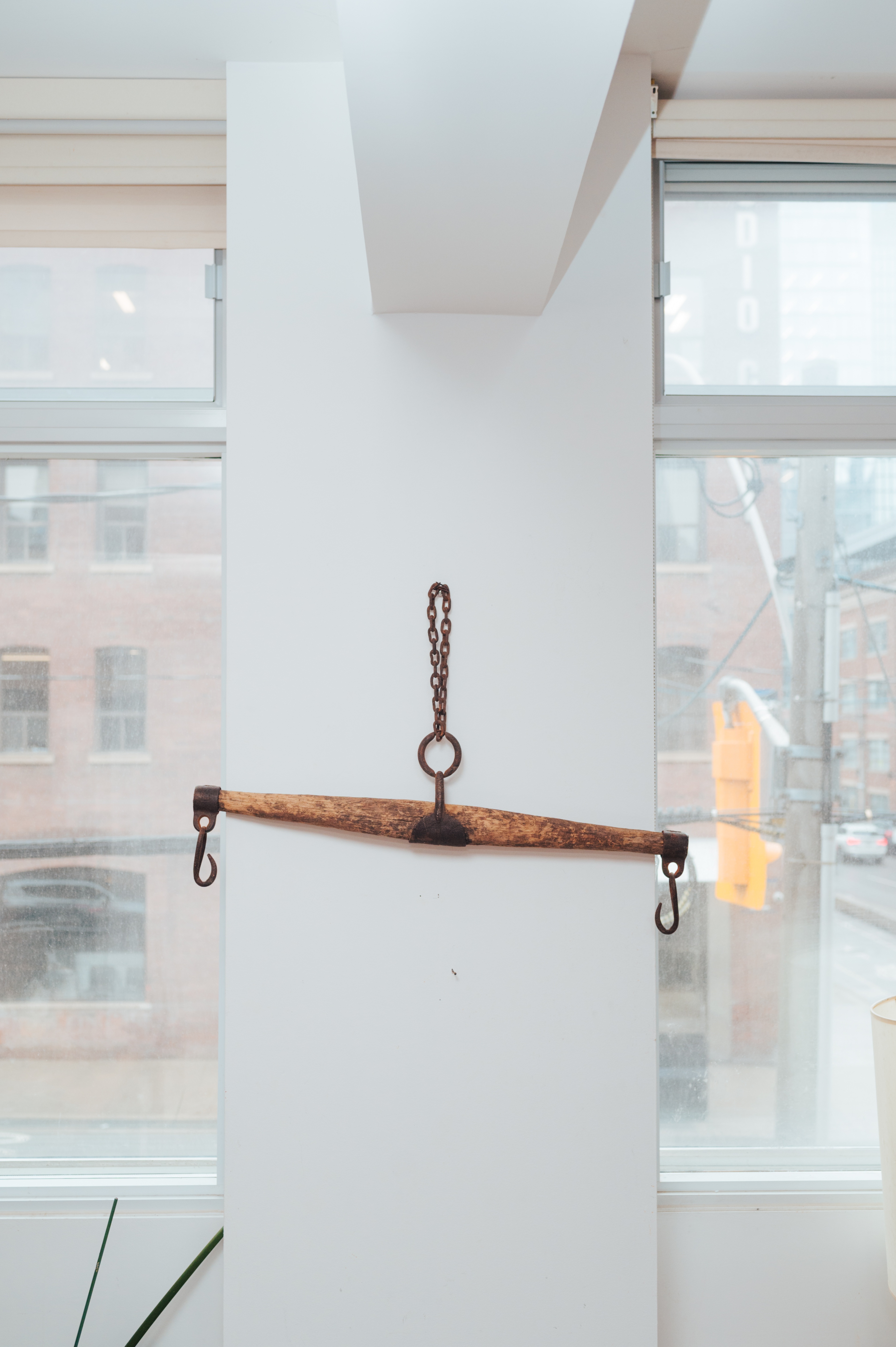 Vintage Wooden Farm Drag Bar / Hanging Wall Piece Authentic vintage wooden farm drag bar with original iron hardware and chain. This piece was traditionally used behind the knees of a horse for dragging timber - — and today makes an incredible rustic décor object. Beautiful aged wood, heavy iron hooks, and tons of character. Perfect as a: • Wall-mounted décor piece • Entryway or mudroom hanging bar • Studio or retail display • Rustic / farmhouse accent • Interior styling prop 32" A truly unique, sculptural object with real history. Details: • Solid wood construction • Original iron chain + hooks • Gorgeous aged patina • One-of-a-kind vintage piece Condition: Very good vintage condition. Structurally solid with age-appropriate wear. Pickup: Downtown Toronto – Adelaide St E & Sherbourne Delivery available within the GTA - DM for rates. You are always welcome to send an Uber Courier. — Follow for my COMMERCE PROFILE for more curated vintage & statement decor Follow me on Instagram @_sundaycreative