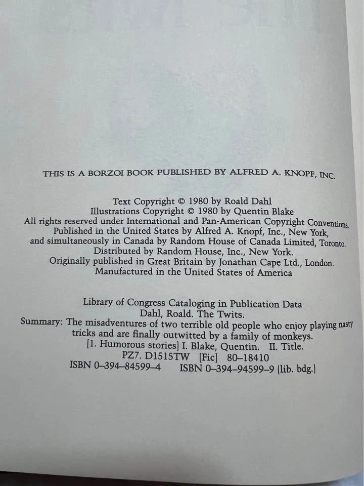 The Twits by Roald Dahl, published in 1980