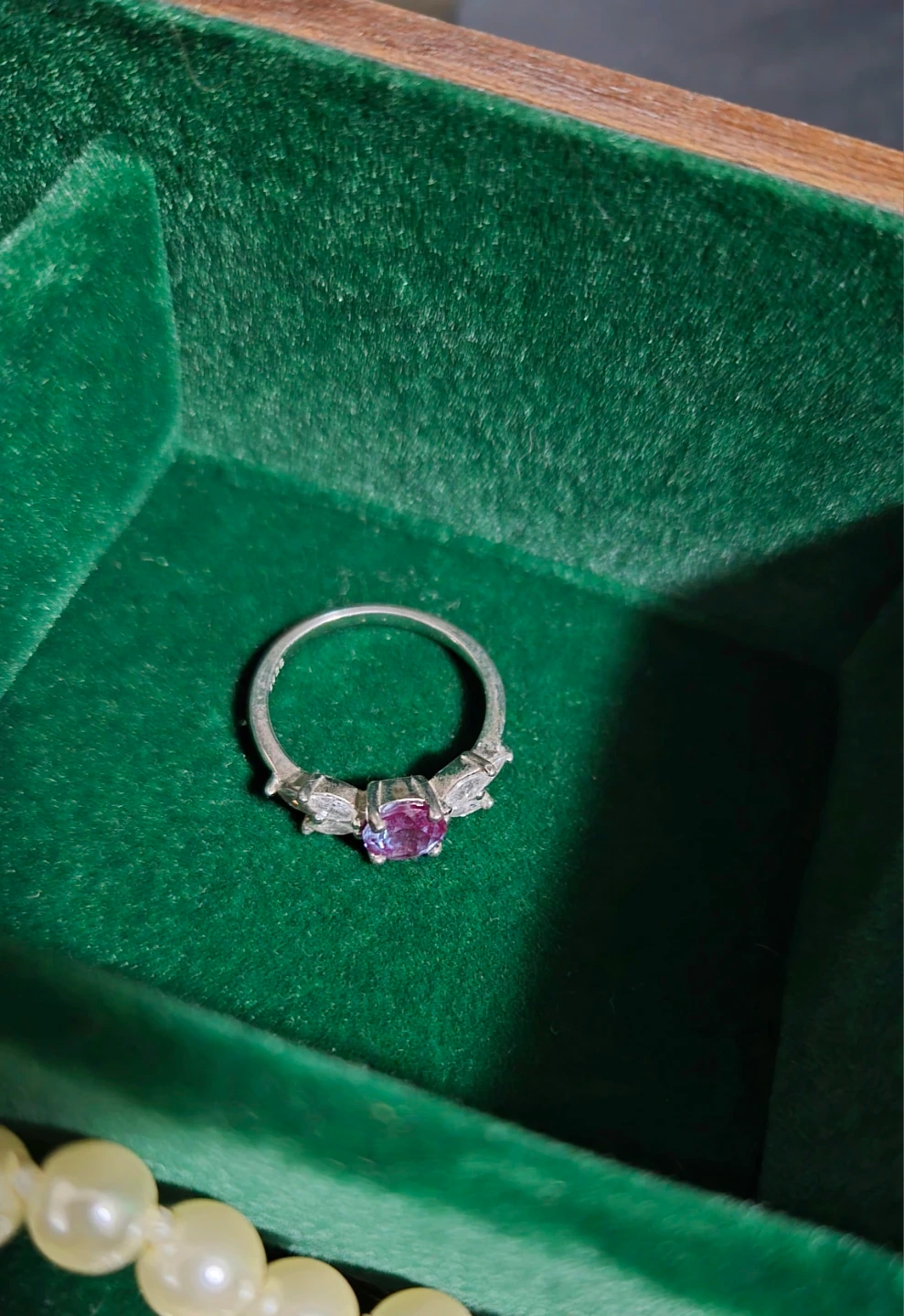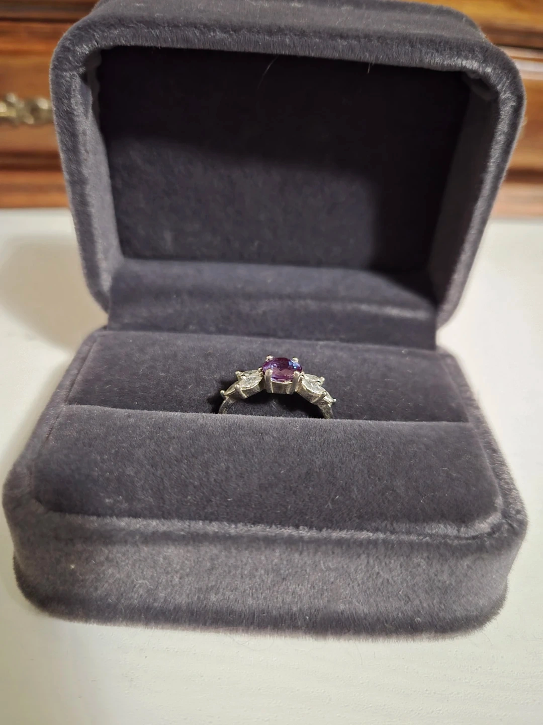 Selling a 925 silver ring featuring a beautiful alexandrite stone. It comes in a box, perfect for gifting or keeping it safe. The ring is in great condition and ready to be worn! Size 7. Note alexandrite changes color depending on the lighting.