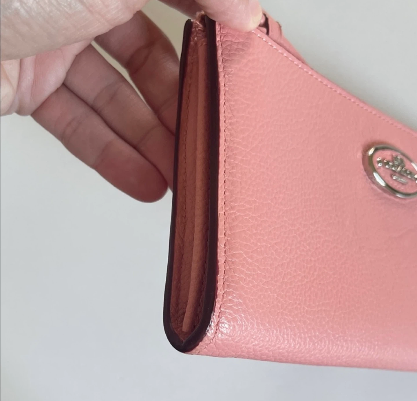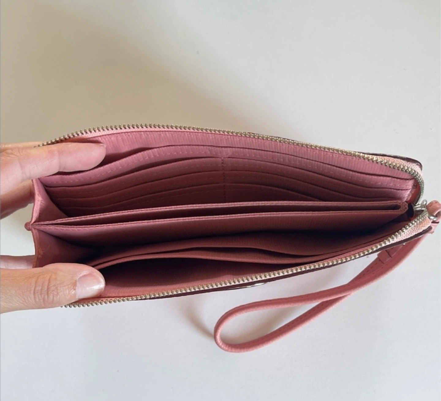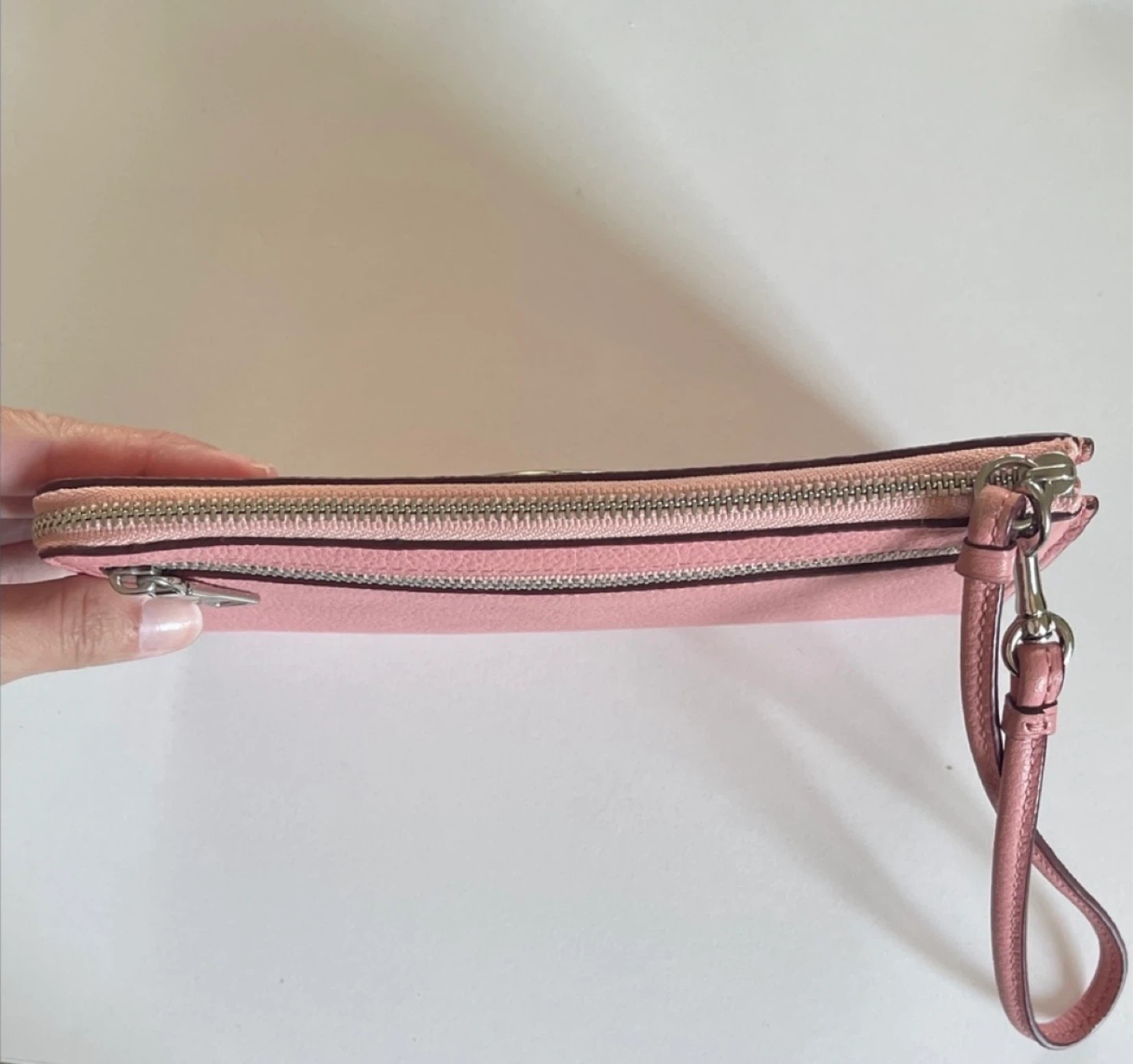 Selling a Coach wristlet wallet in a lovely pink leather. It's in great condition and has plenty of space for cards and cash. Perfect for keeping your essentials organized! Think I used it maybe twice.