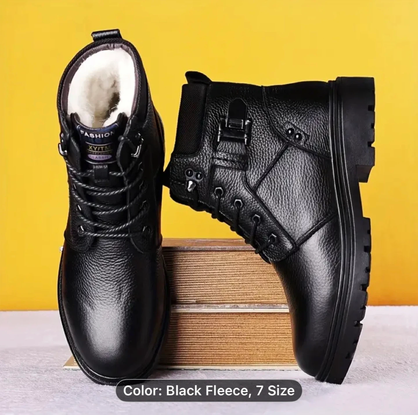 Men'S Snow Boots, New Style for Winter, Thickened And Lined High-Top Casual Leather Shoes, Warm Velvet, Non-Slip Short Boots for Outdoor Wear, Cold-Resistant Men'S Footwear.