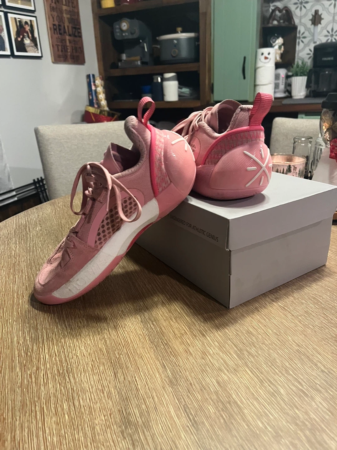 Selling a pair of Li-Ning Way of Wade Encore 12 shoes in pink, size 9.5 They come with the original box. These shoes are in great condition and ready for a new owner!