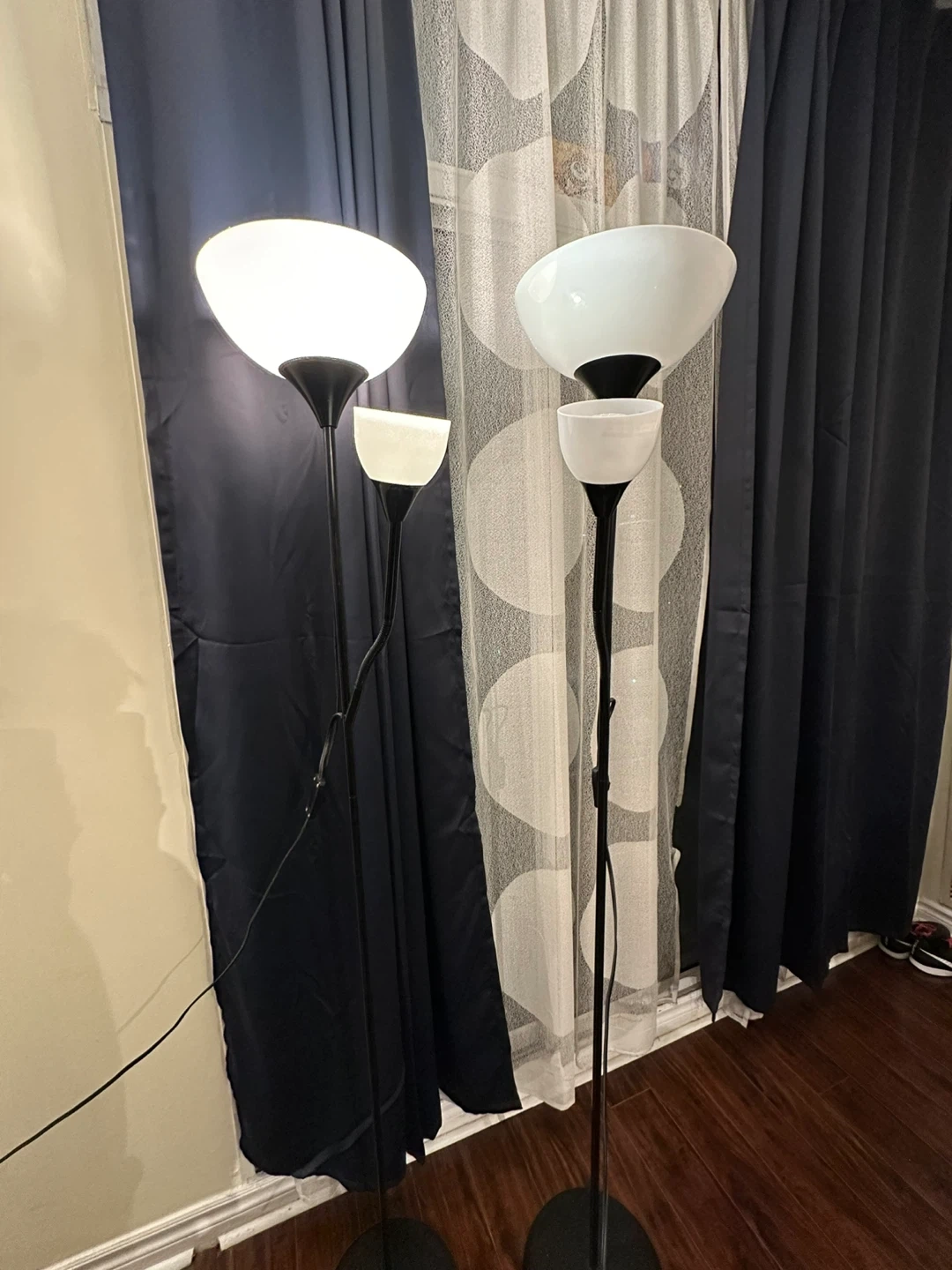 Selling a floor lamp in great condition. They feature black bases with white shades for a modern, versatile look that fits any room. Perfect for adding extra light and style to your home.