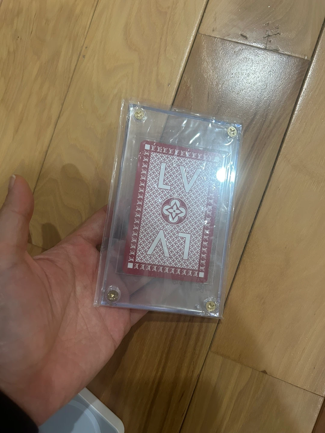 Selling a Louis Vuitton playing card. The card is encased in a clear protective case with screws. Feel free to reach out if you're interested!