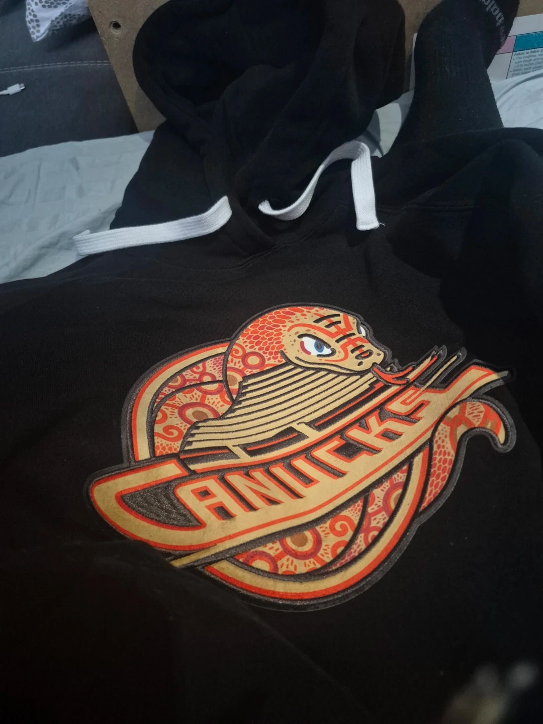 Selling a black hoodie with the Vancouver Canucks logo. It's in great condition and perfect for showing your team spirit!