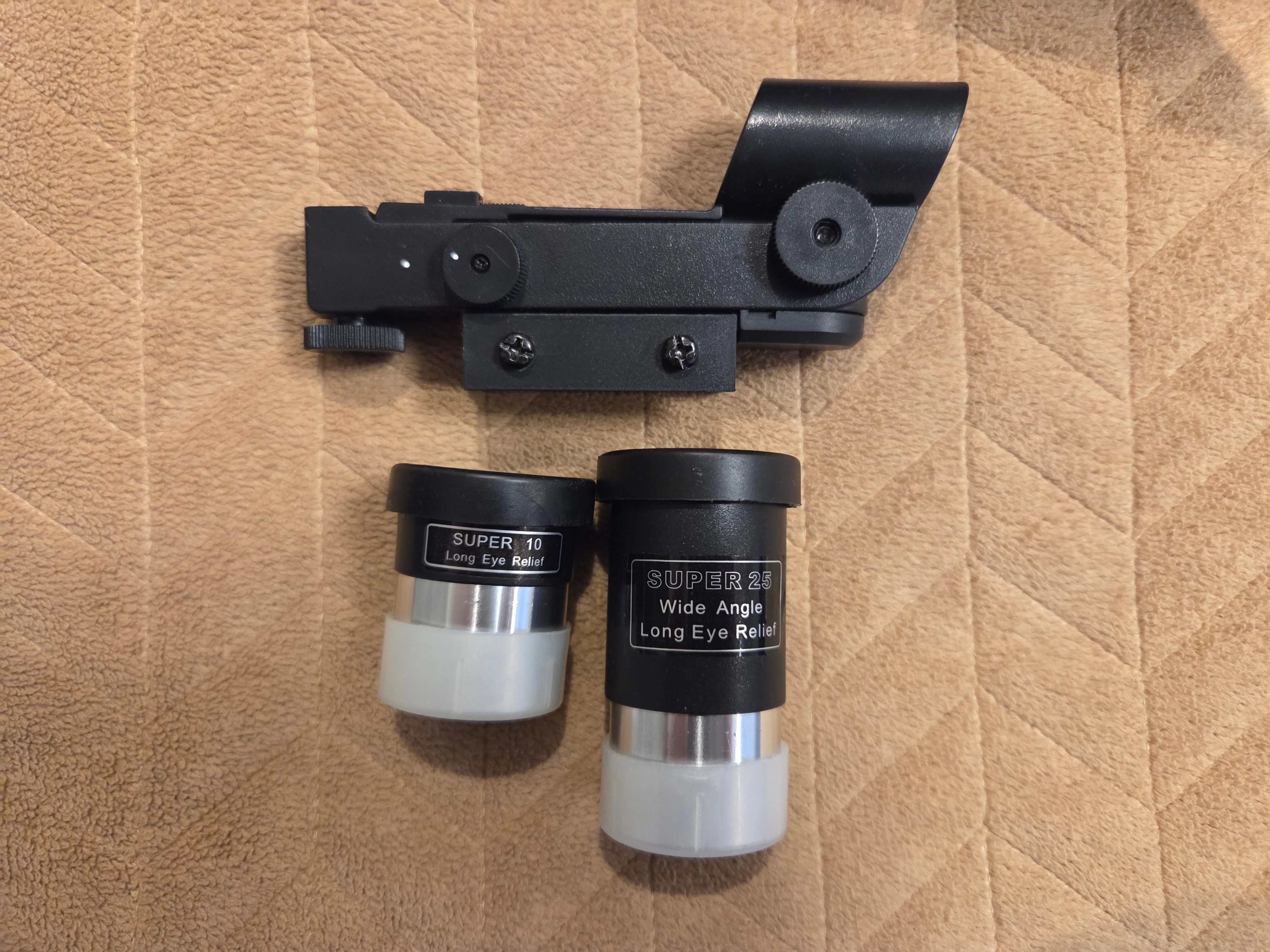 Accessories: red dot finder, 10 mm and 25 mm eyepiece lenses.