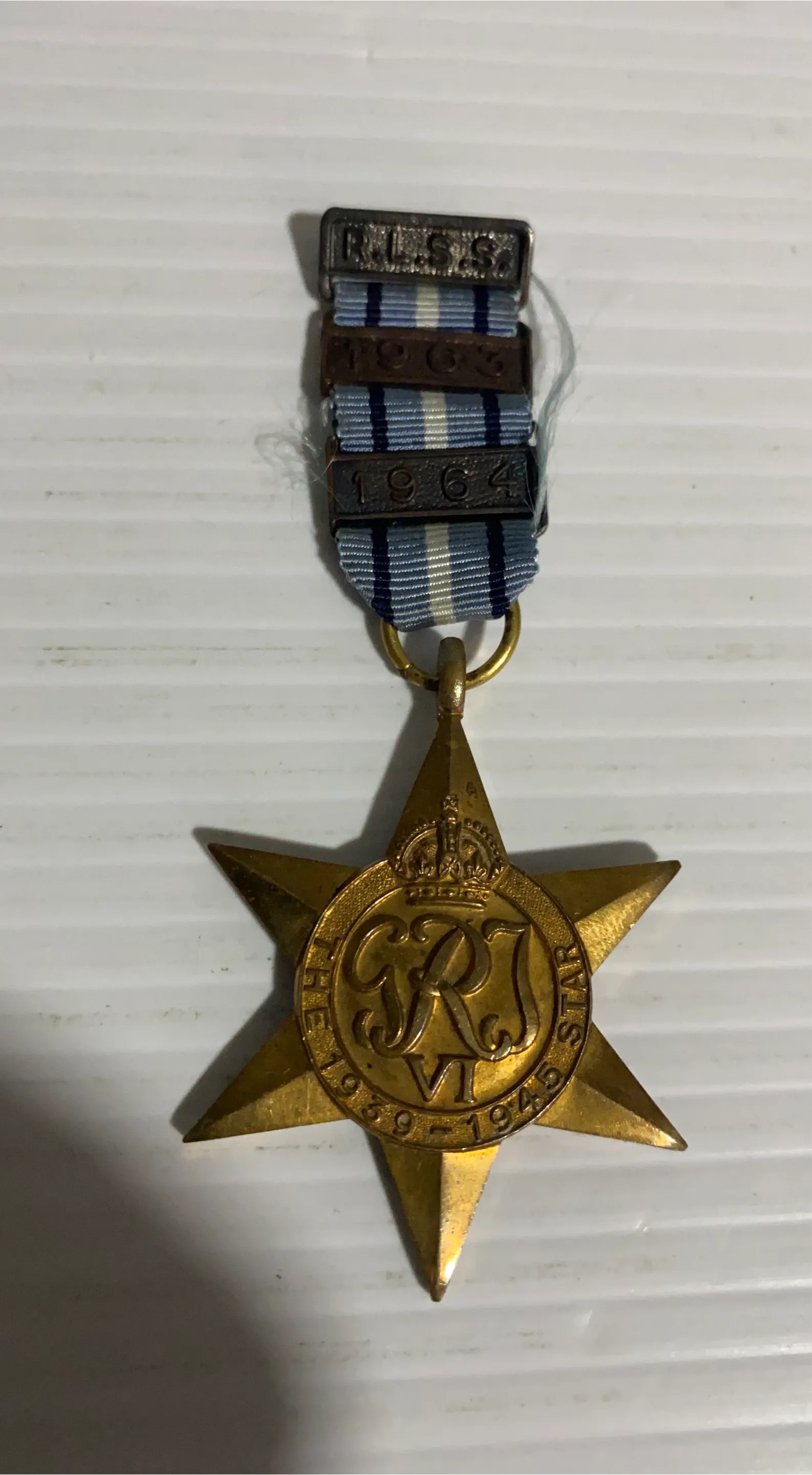 Selling a 1939-1945 Star war medal. It features the Royal Cypher 'GRI VI' surmounted by a crown, with 'THE 1939-1945 STAR' below. The ribbon is blue, white, and light blue.
