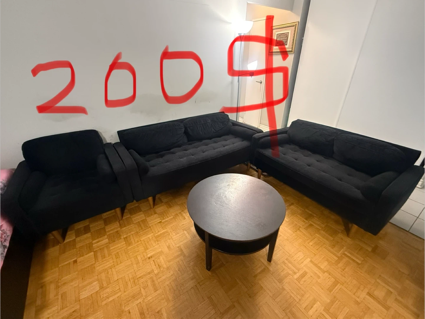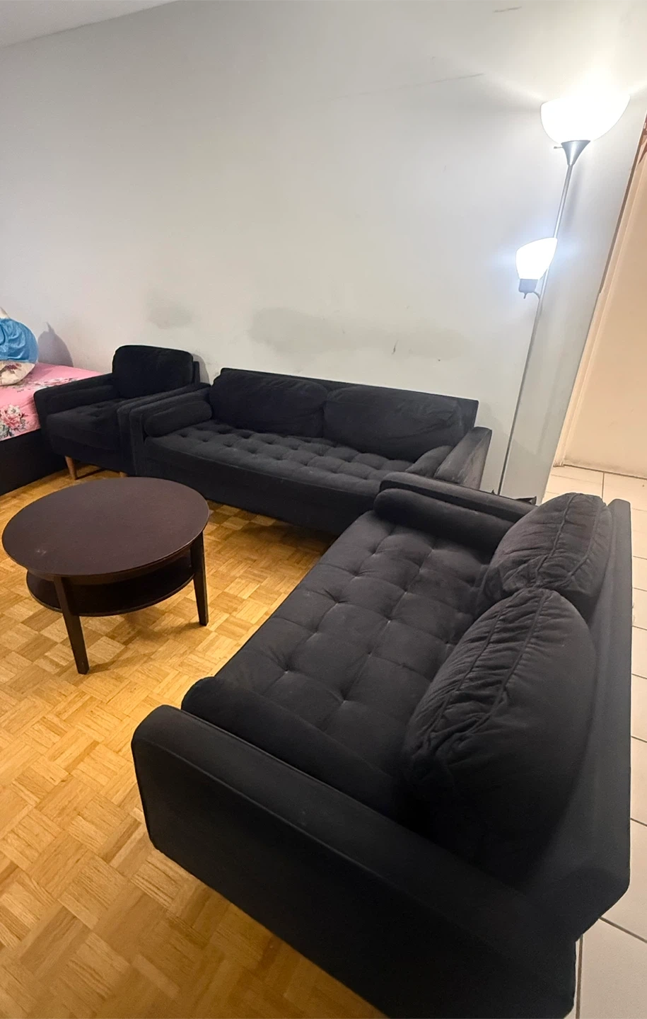Black Sofa Set with Round Table
