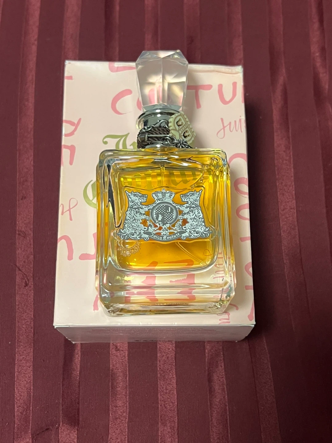 Selling a bottle of Juicy Couture Eau de Parfum. The bottle contains 100 ml / 3.4 fl oz of fragrance. It comes with the original box