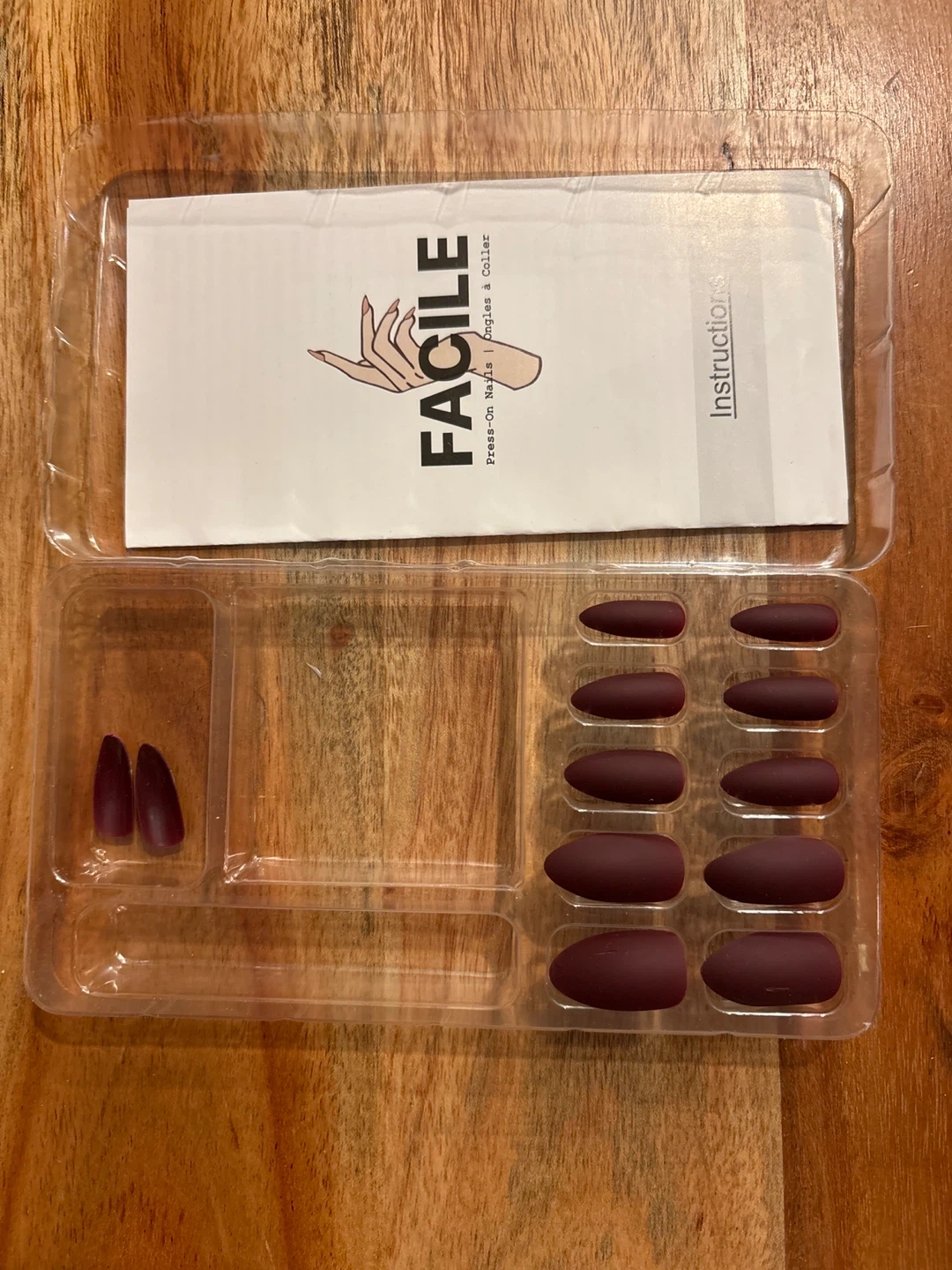 Free set of Facile reusable press-on nails. Includes the nails, instructions, and accessories for application.