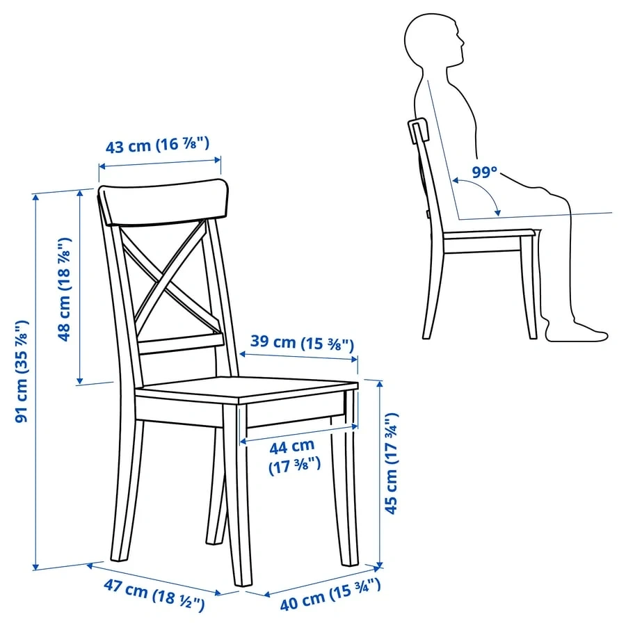 Selling an IKEA INGOLF chair set in white. It's in excellent condition, practically brand new! The dimensions are: