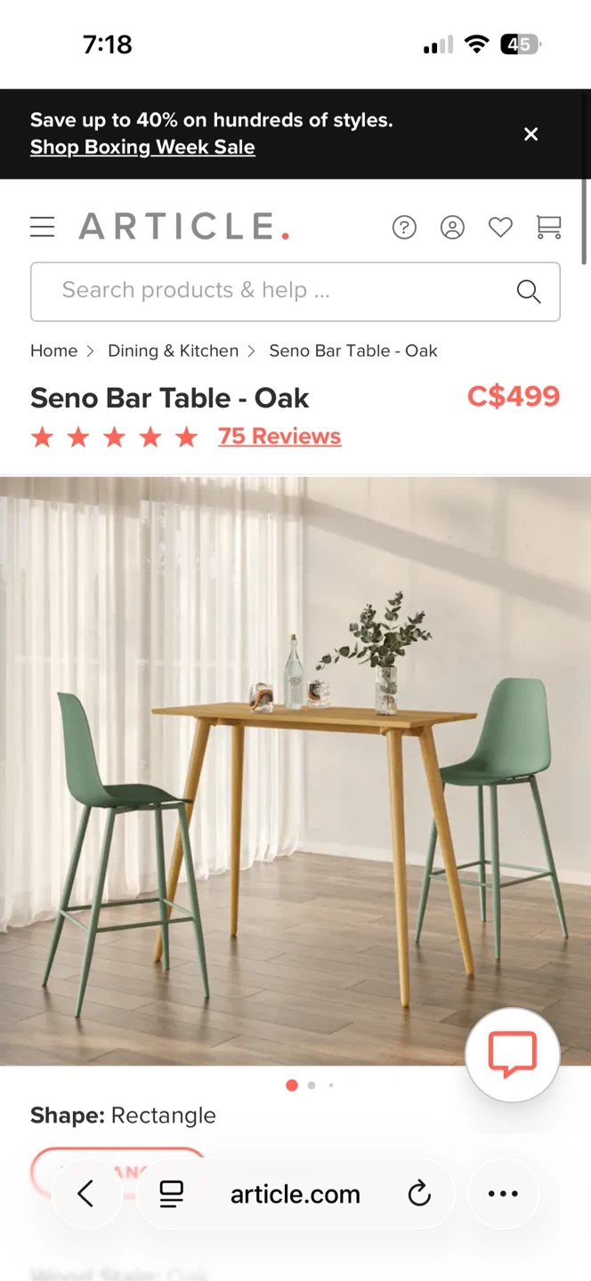 Selling an Article Seno Bar Table on Oak. It's in great condition and would be a perfect addition to any kitchen or dining space. The table is made from a beautiful solid oak and has sturdy legs. Also selling the pink chairs if interested