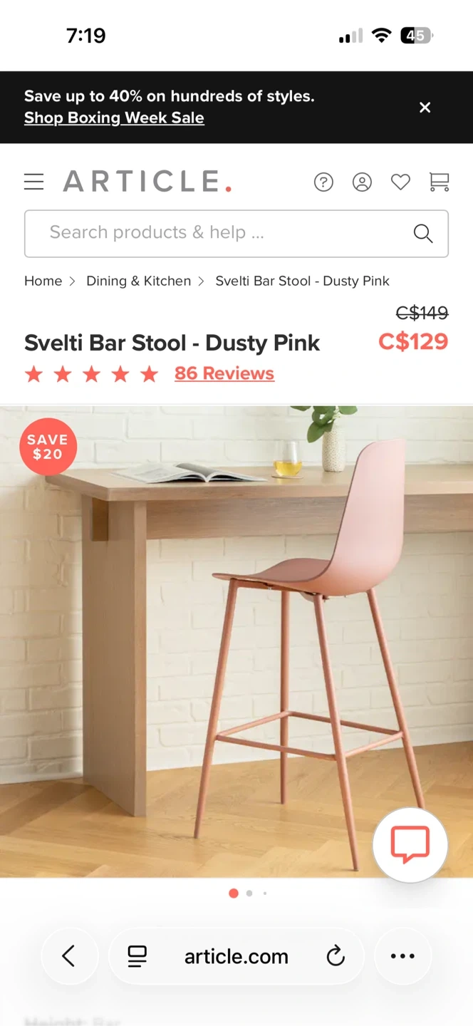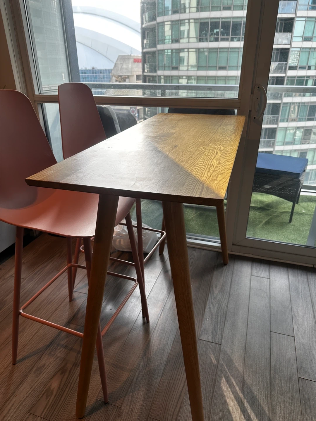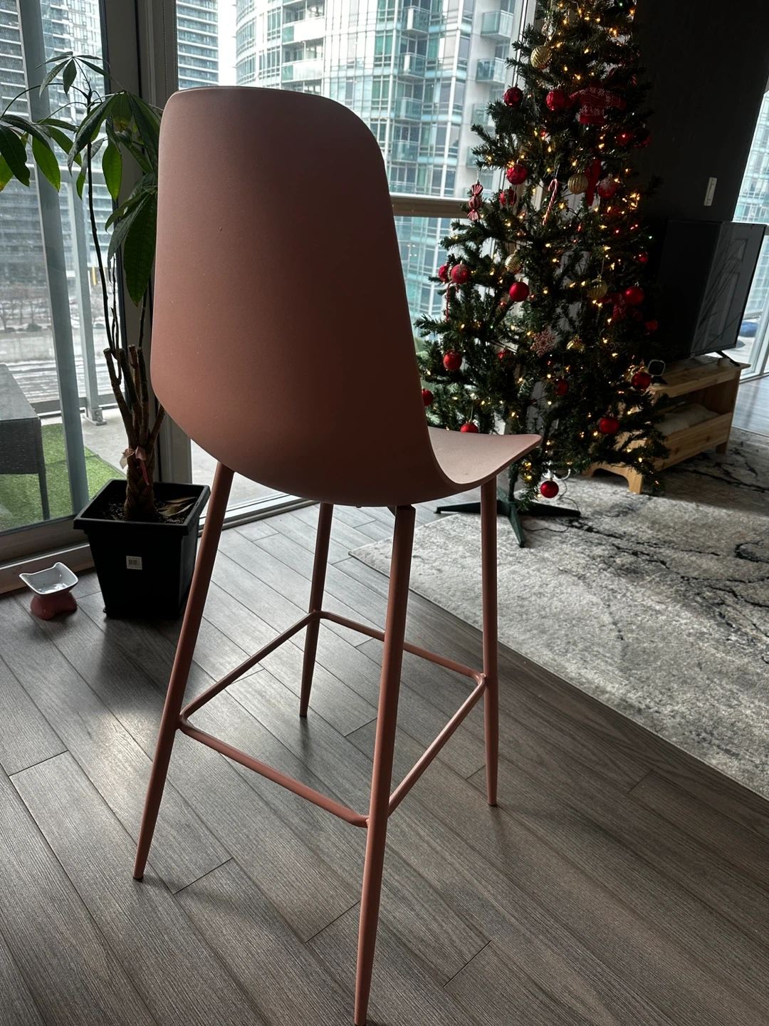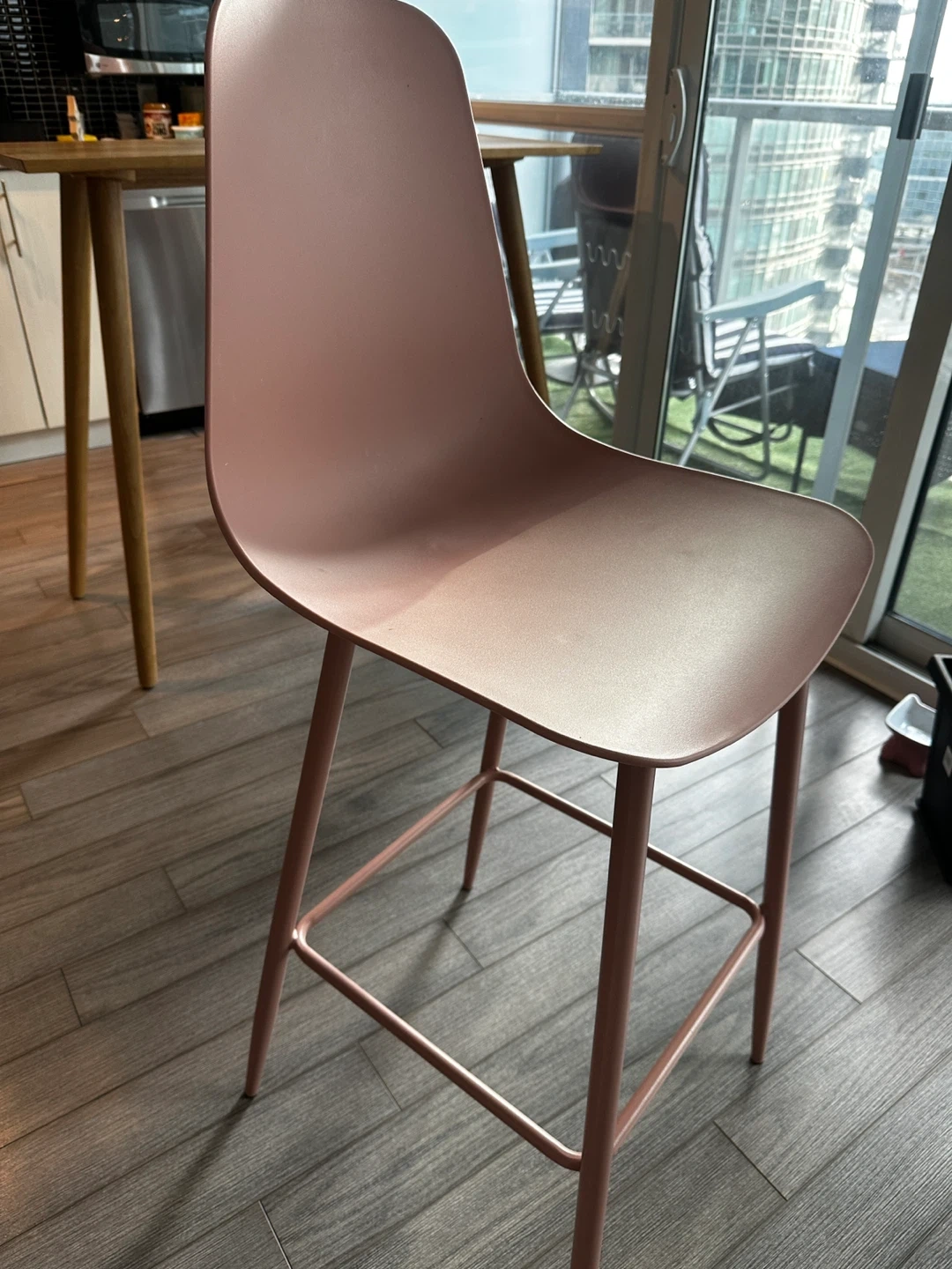 Selling these 2 Article bar stool in a cute pink color! It's in great condition and would look great at a kitchen counter or bar area. It's a sturdy and stylish piece of furniture! Also selling the bar table shown in the picture if interested. The price is for the unit