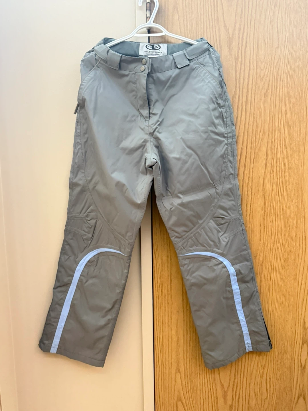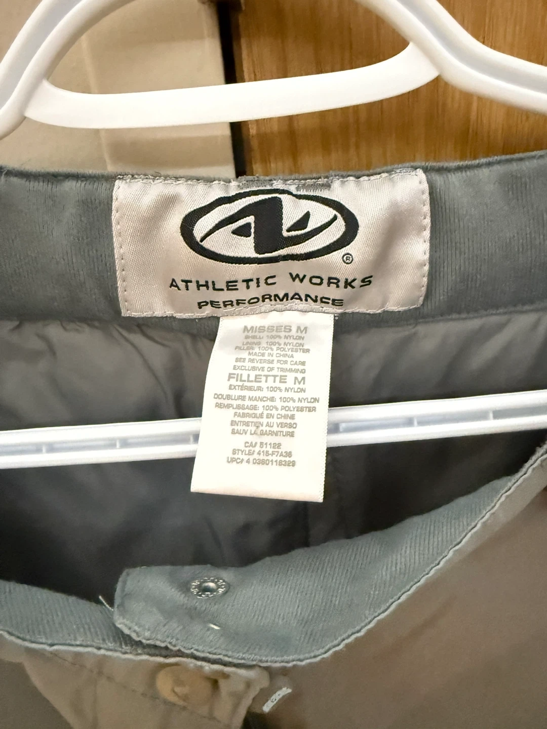 Selling a pair of Athletic Works Performance snow pants in Misses M size. They are a light grey/khaki colour and made with a nylon shell and polyester lining. Perfect for staying warm and dry this winter season! From a smoke free bug free fur pet free home, message me if interested.