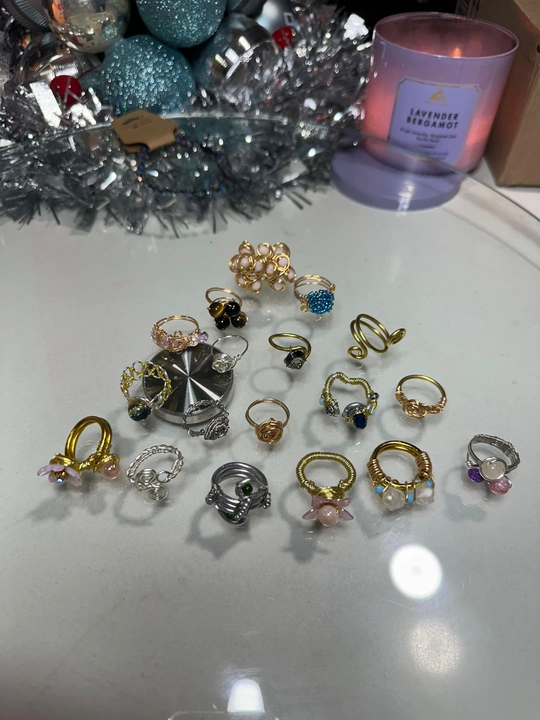 Check out these unique handmade wire rings! There's a variety of styles and colors available, perfect for adding a personal touch to your look. They're in great condition and ready to wear!