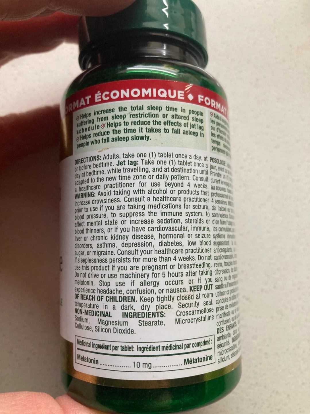 Opened bottle of Nature's Bounty Melatonin, maximum strength, 10mg. I’m just not using i; about 40 tablets remaining. Helps reset your sleep-wake cycle. Expiry date is November 2024, but don’t think it matters.