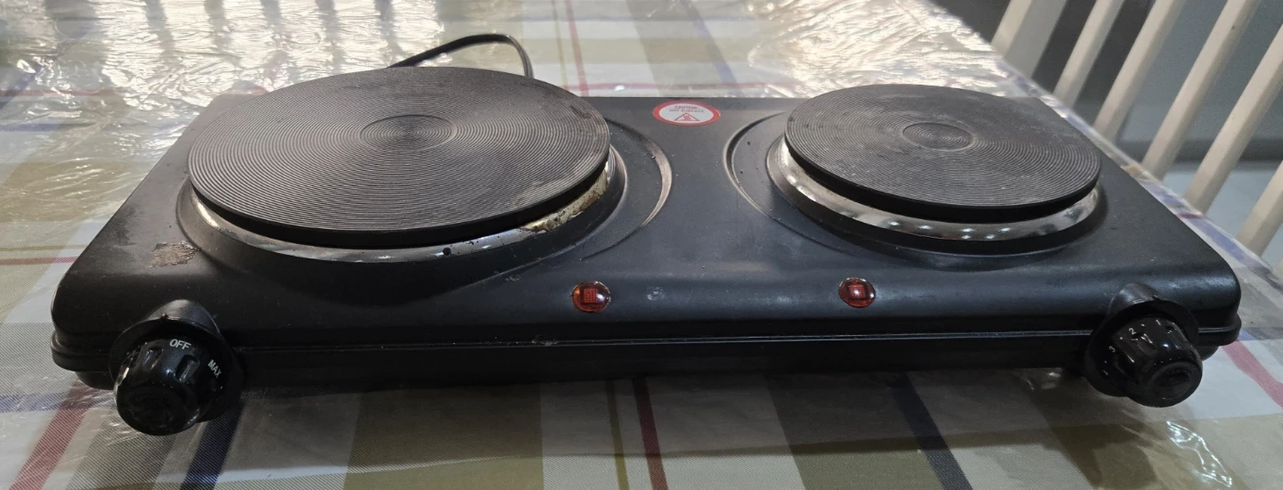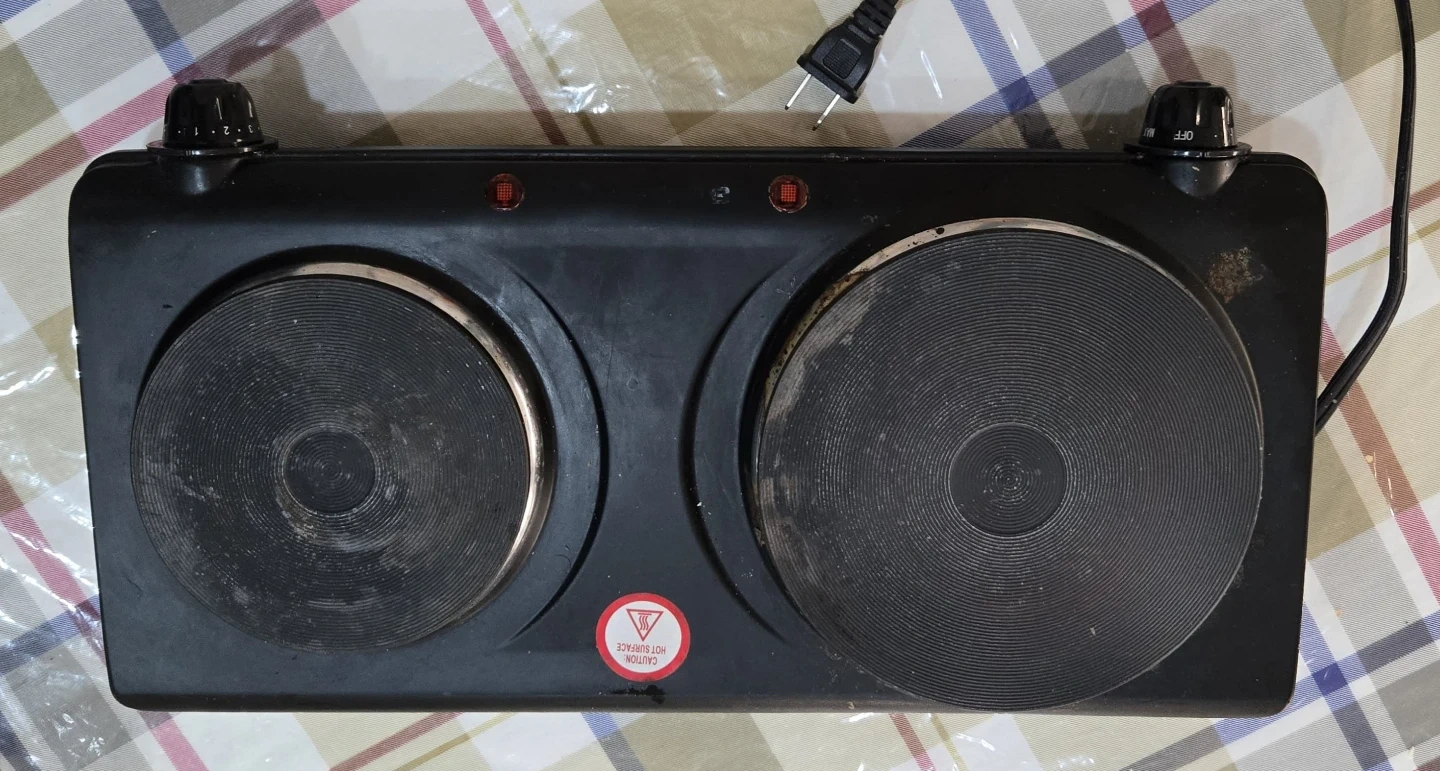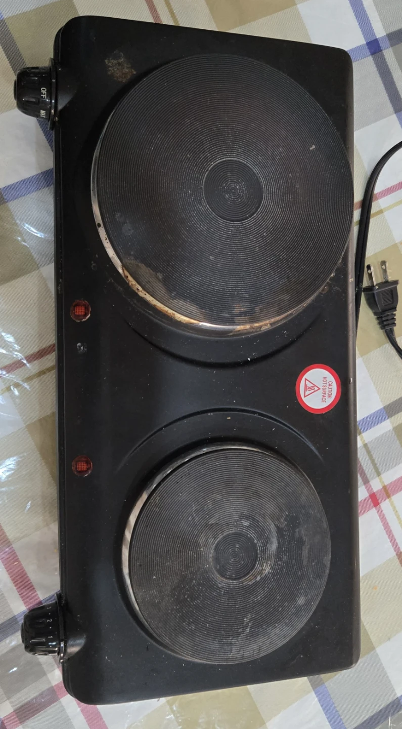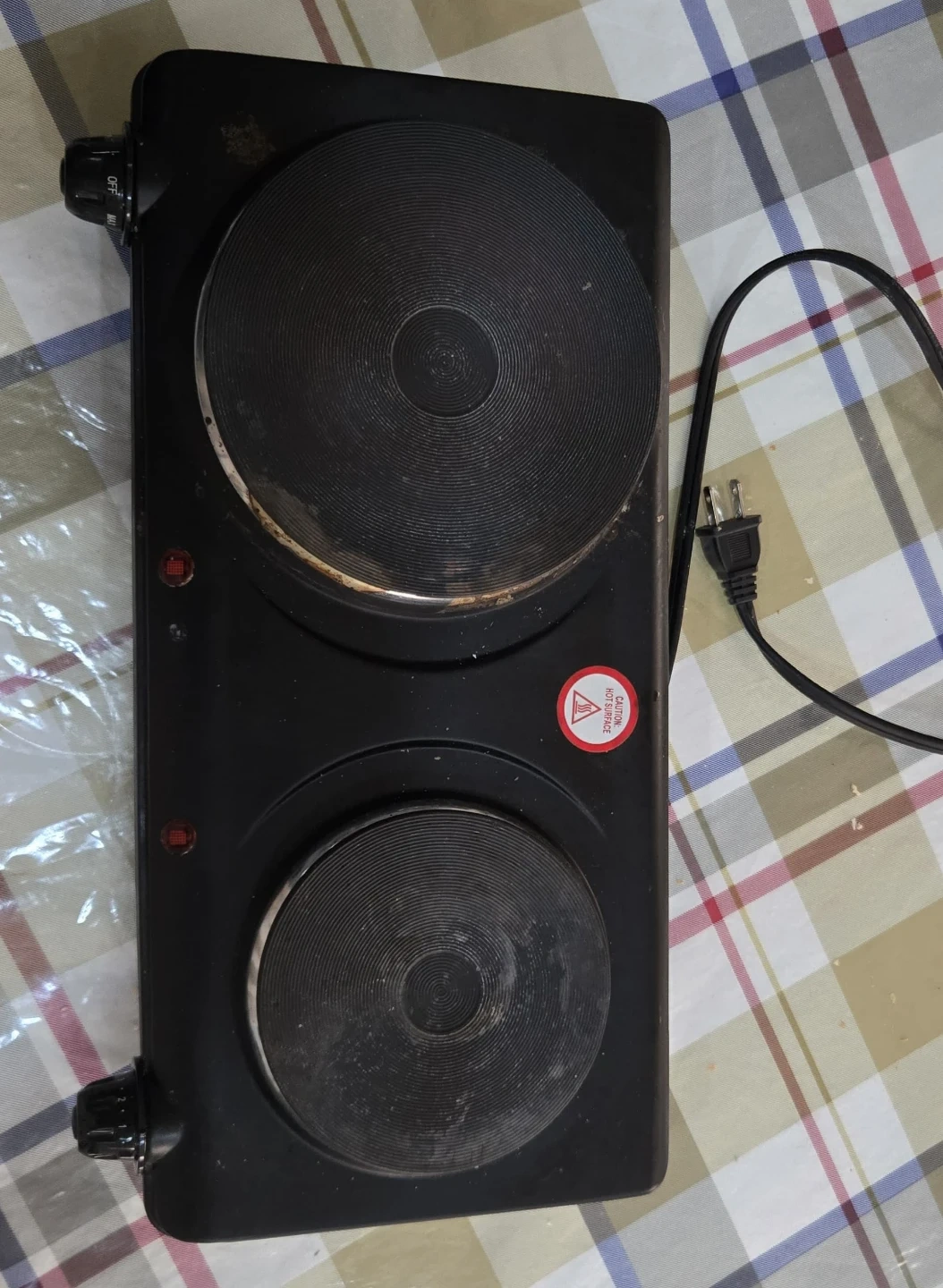 Selling a used Elite Gourmet double electric burner. It shows signs of wear and use, but still works. Perfect for camping or small spaces