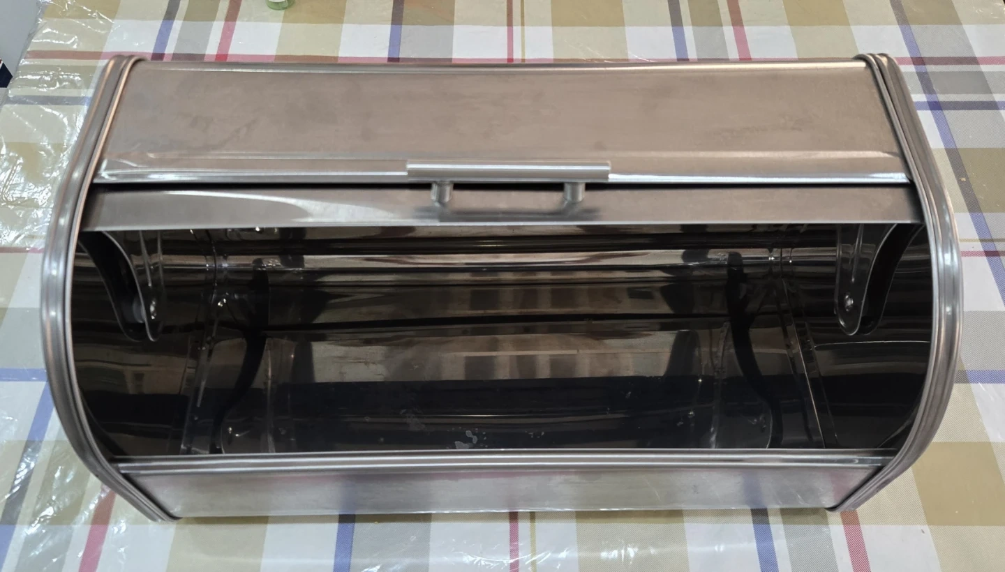 Selling a stainless steel bread box. It's in great condition and ready to keep your bread fresh! The stainless steel finish will look great in any kitchen