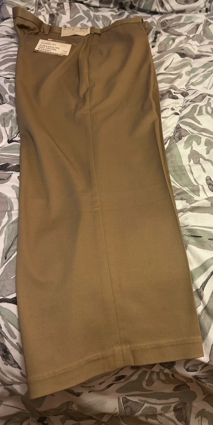 BRAND-NEW pair of men’s Haggar Classic Fit khaki pants. These are a size 40W x 30L. Hubby needed longer leg length. They are premium no-iron and made with stretch fabric. They also feature a hidden expandable waist and are machine washable. Suggested retail price is $70.