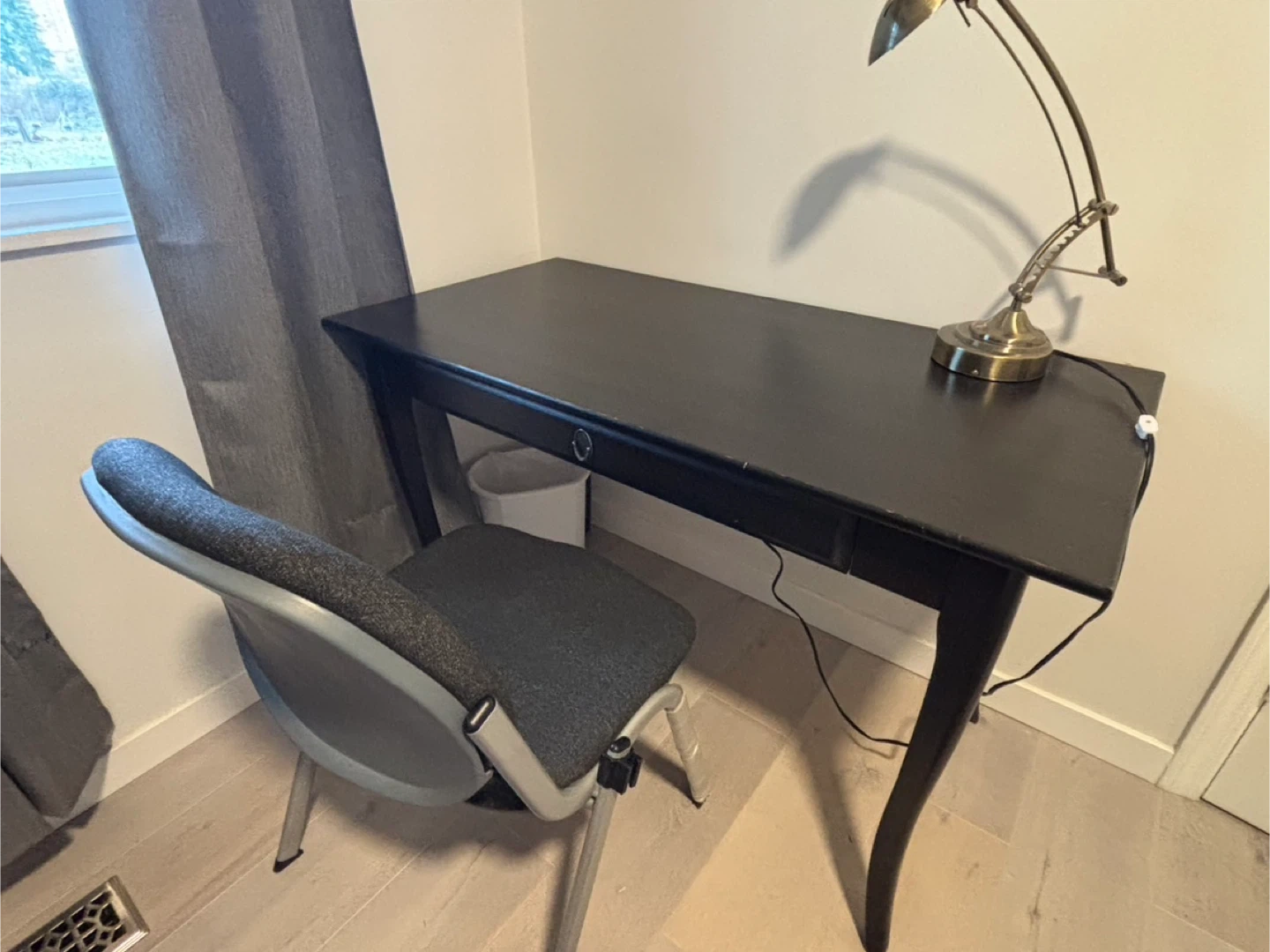 Buy & SellBlack Desk and Grey Chair SetBlack Desk and Grey Chair Set$90Selling a desk and chair set. They are in good condition and would be great for a home office or studentConditionLike newWHERE TO MEET10220 Semiahmoo RdView MapSELLEREmmaCentral City869 reviews1 chats·1 favorites·51 viewsSEND CHAT TO SELLERHi Emma! I’m interested in your listing.Hi Emma! I’m interested in your listing.Get the Karrot app to chatSign In to chat