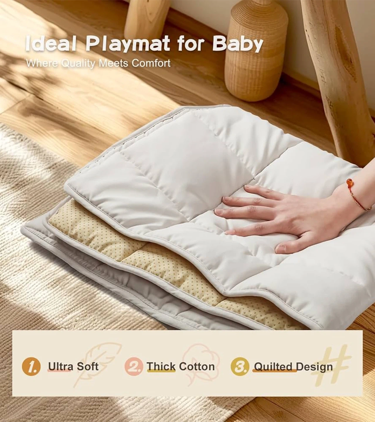 - Ultra-soft, thick cotton with a quilted design