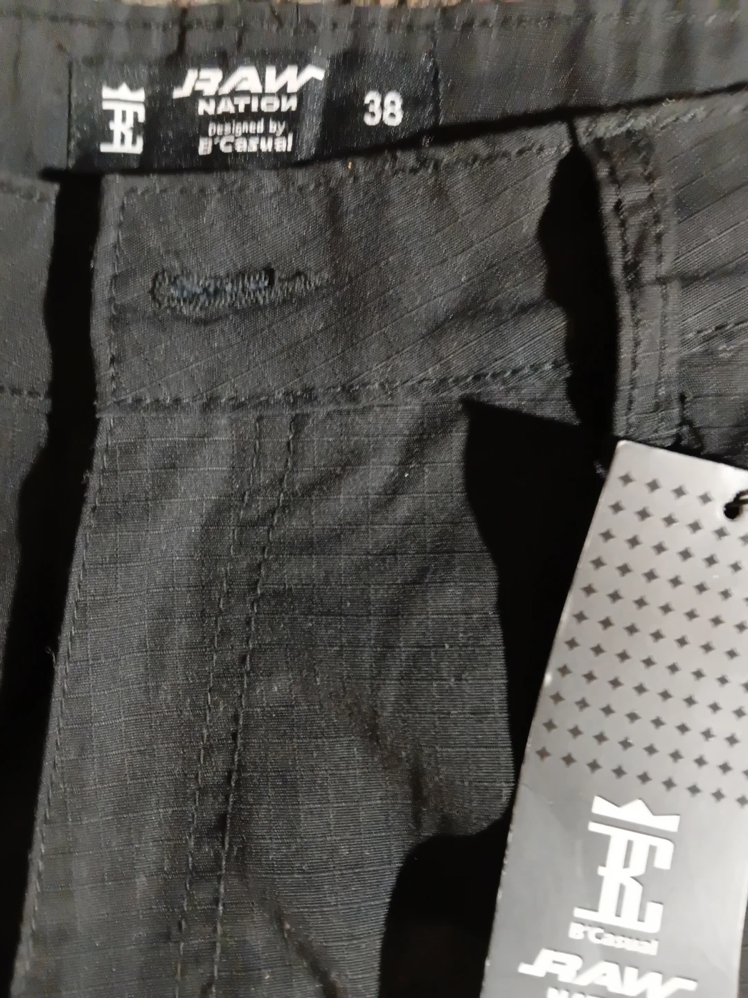 Selling a pair of RAW NATION B'Casual cargo shorts in black! They're size 38 and in great condition. Perfect for casual wear or outdoor activities. Check out the photos for details!