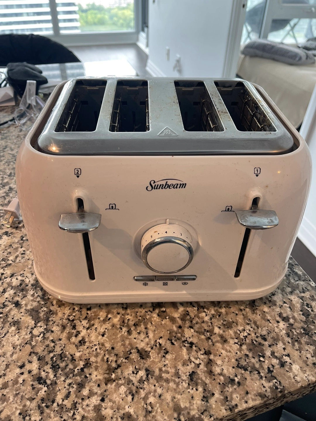 Sunbeam 4 slice bread toaster. Pick up on either Wednesday or Thursday. Fairly used but runs quite well. Has settings for bagels and de-freeze too. Reason - Moving out