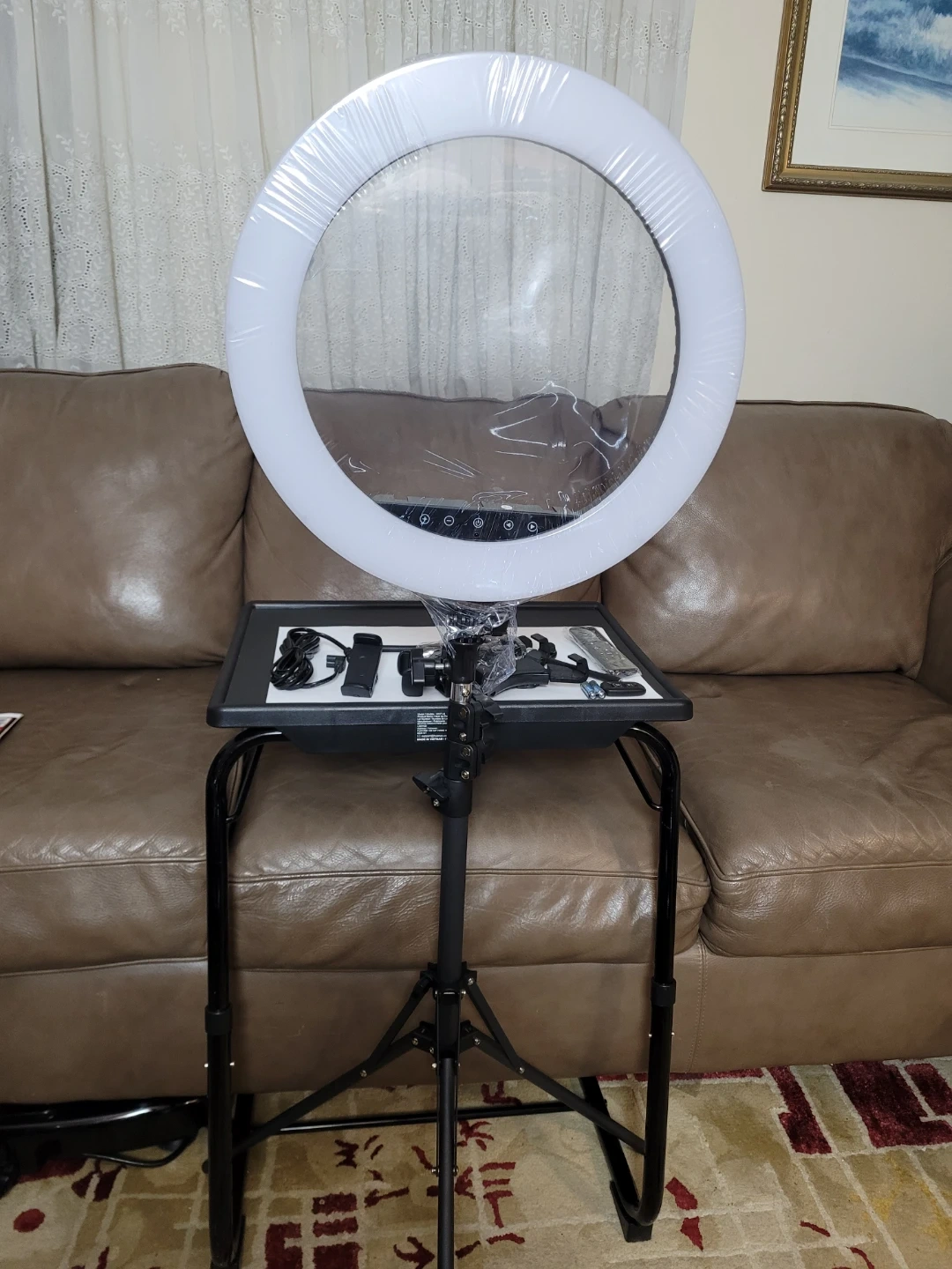Selling a ring light that comes with a stand and various accessories! It is in great condition and includes a remote, and other components shown in the pictures. Perfect for content creation or video calls