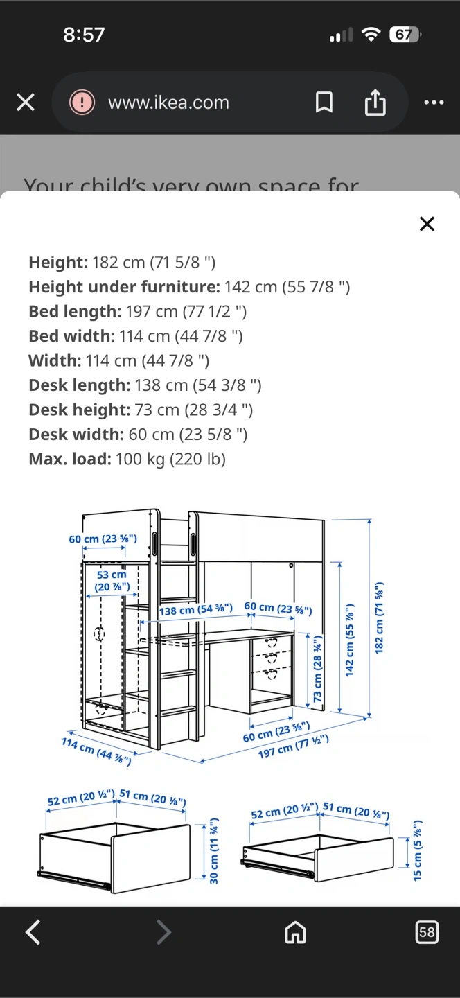 IKEA SMÅSTAD Loft Bed with Desk & Shelves