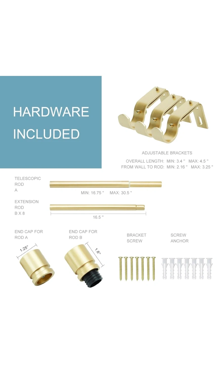 Selling a brand new set of Byondeth curtain rods in warm gold! The box includes accessories inside, so you'll have everything you need for installation