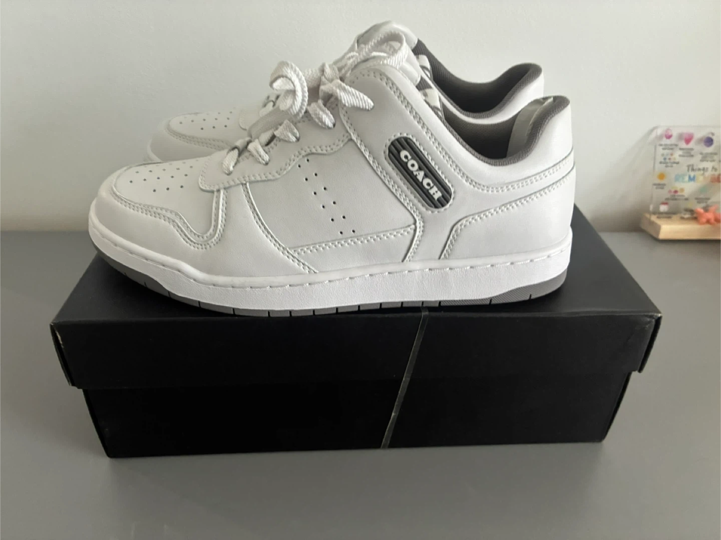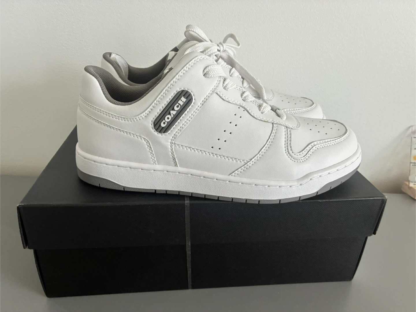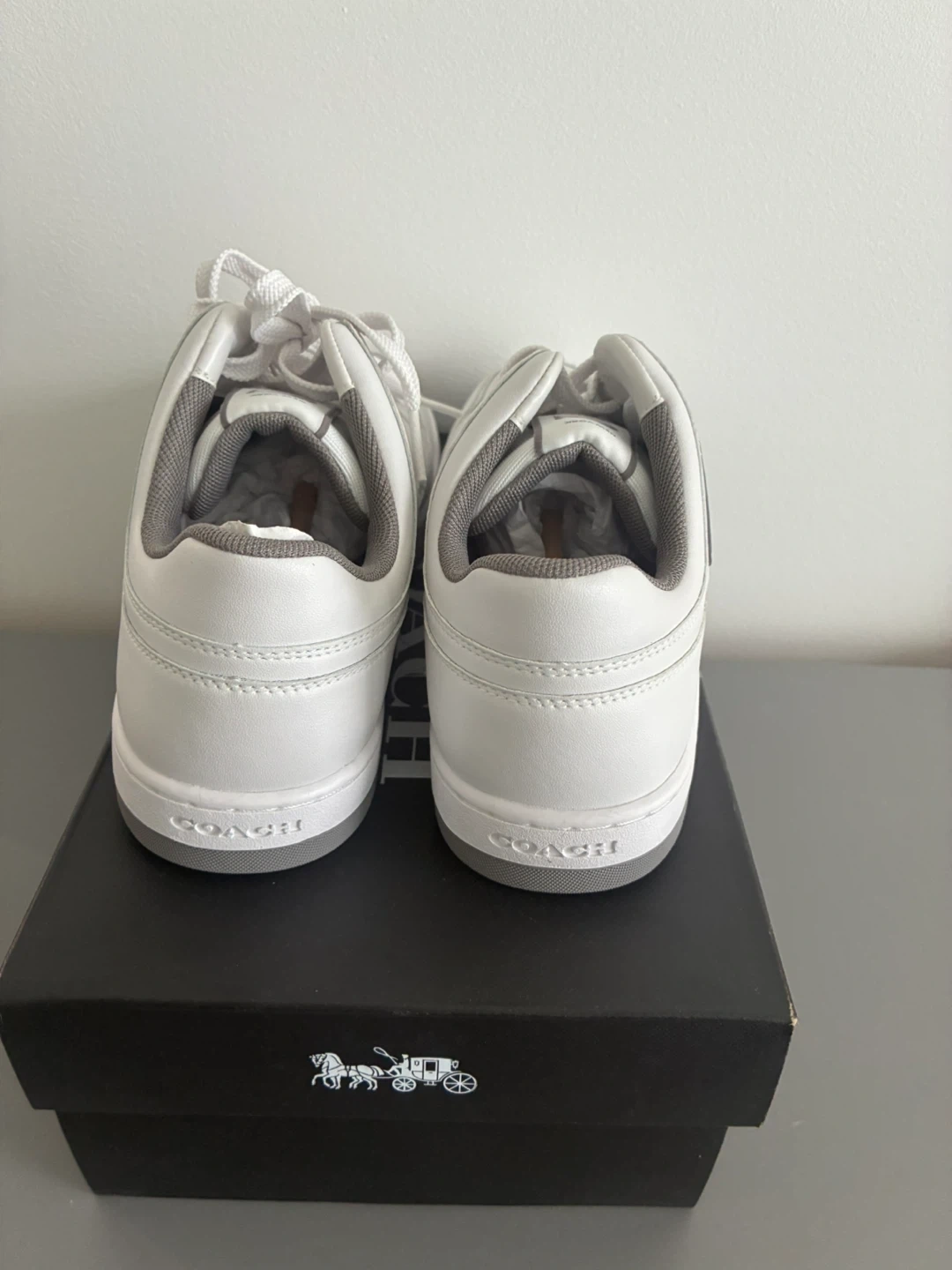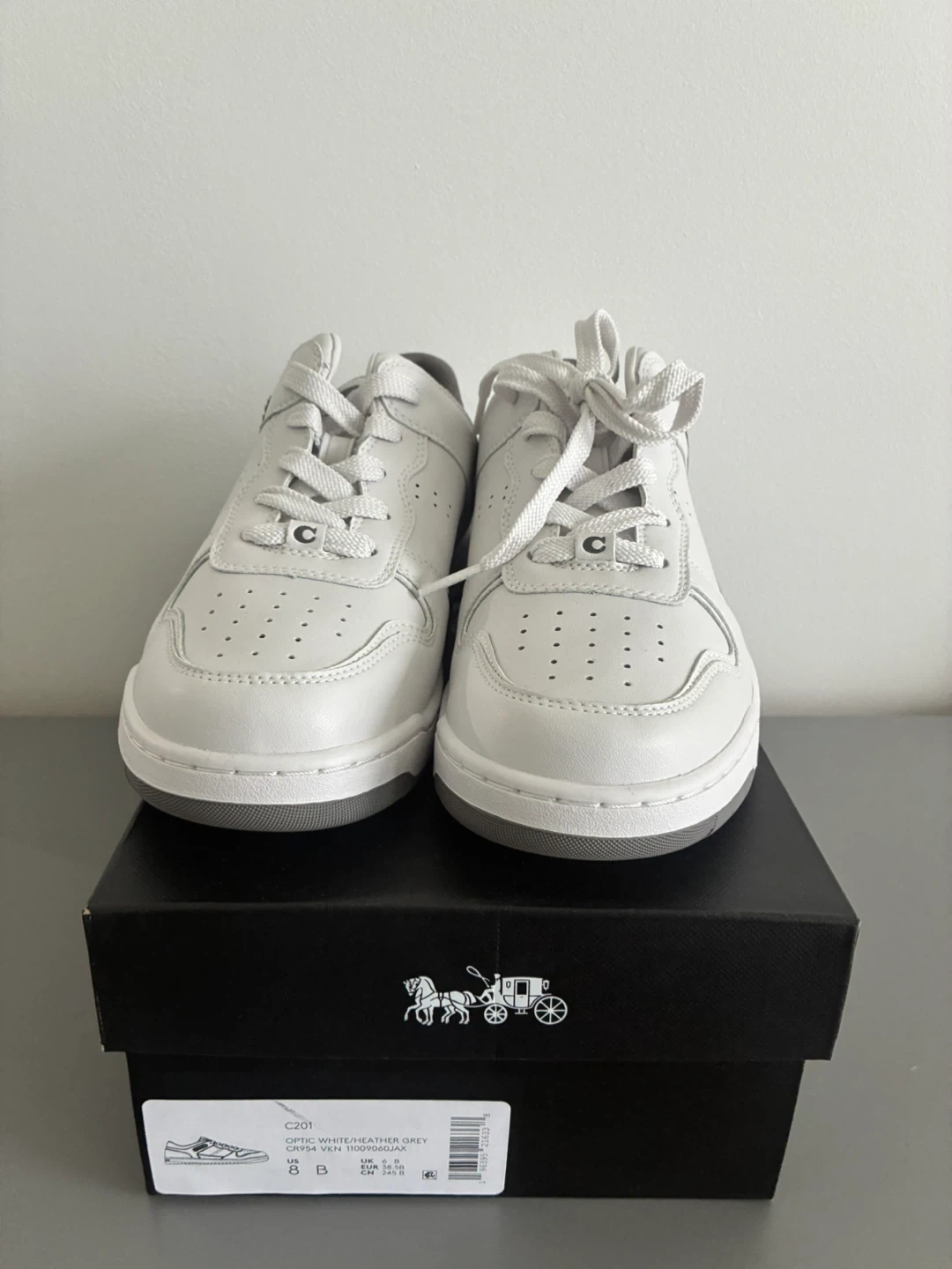 Selling a pair of Coach C201 sneakers in white leather, size 8. They are in excellent condition and come with the original box. These stylish sneakers would be a great addition to your wardrobe!