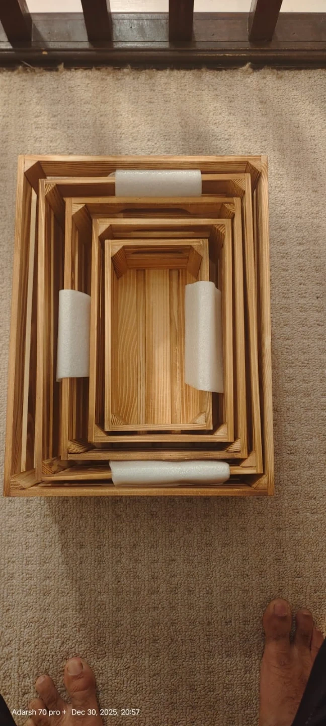 Selling a set of 5 wooden nesting organizers. These are great for organizing or adding a rustic touch to your home decor. They're brand new!