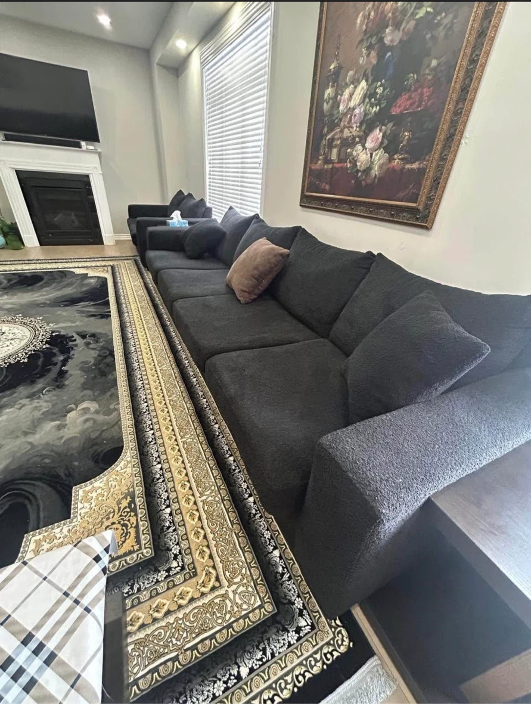 Selling a comfy dark grey modular sofa. It's in great condition and ready for a new home! Perfect for a living room. Seats 10 people comfortably! Custom made