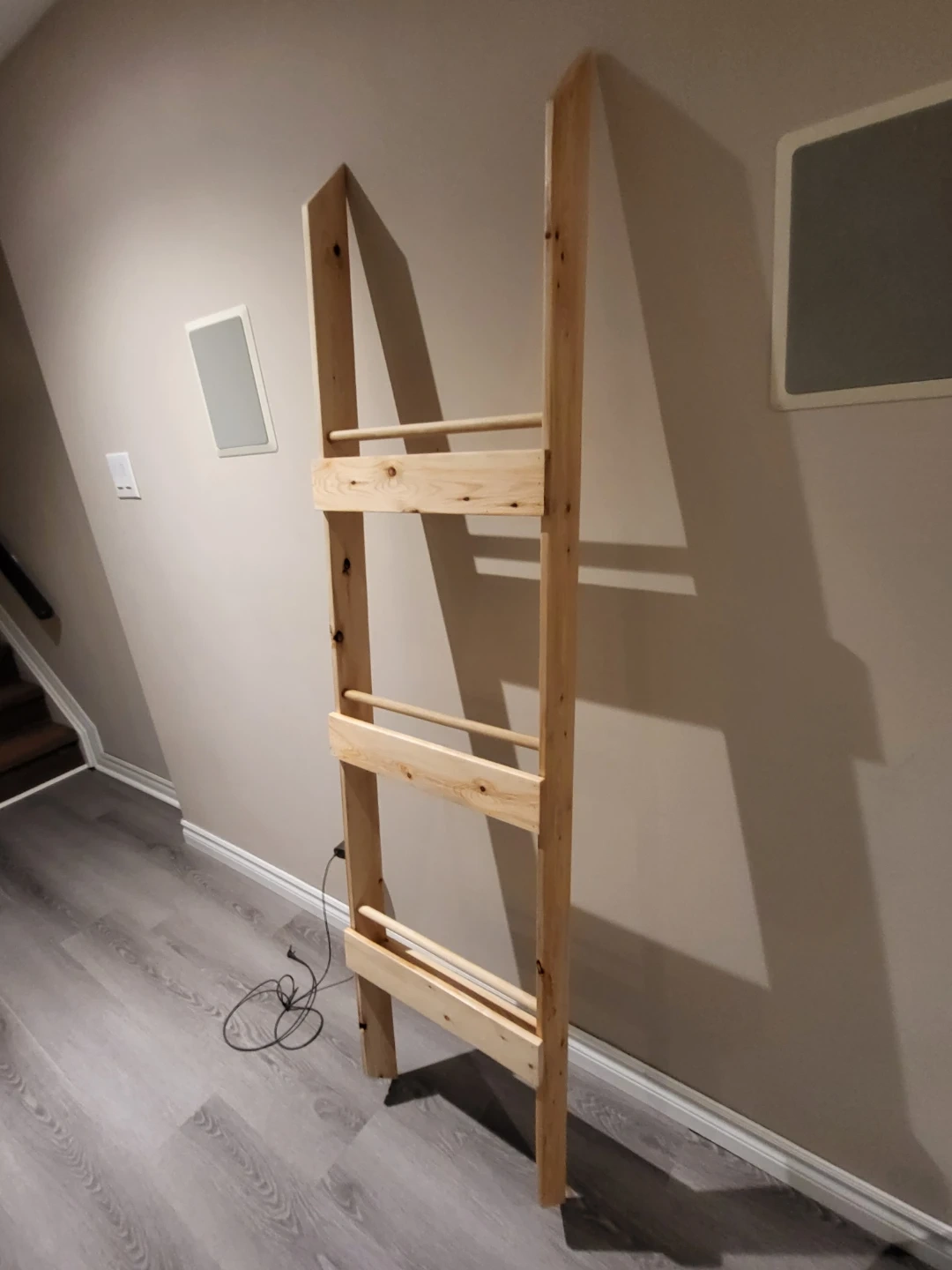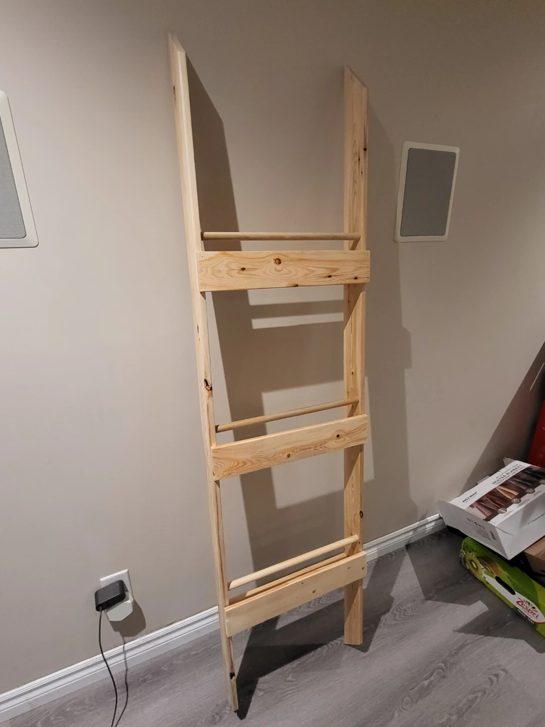 Here's a wooden bookshelf! What makes it special is that the books face cover out to inspire kiddos to read. Needs to be mounted flush to the wall. Measures 6 feet tall, 1.5 feet wide.