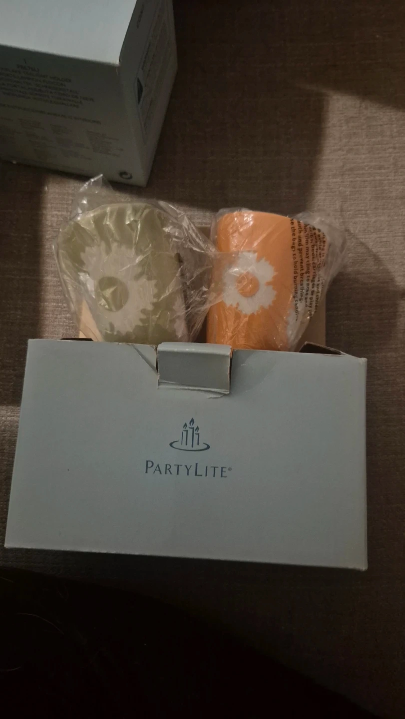 I'm selling a brand new PartyLite Garden Whimsy Votive Pair! The set comes in its original box and includes two votive holders with a cute floral design. Perfect for adding a touch of whimsy to your home decor