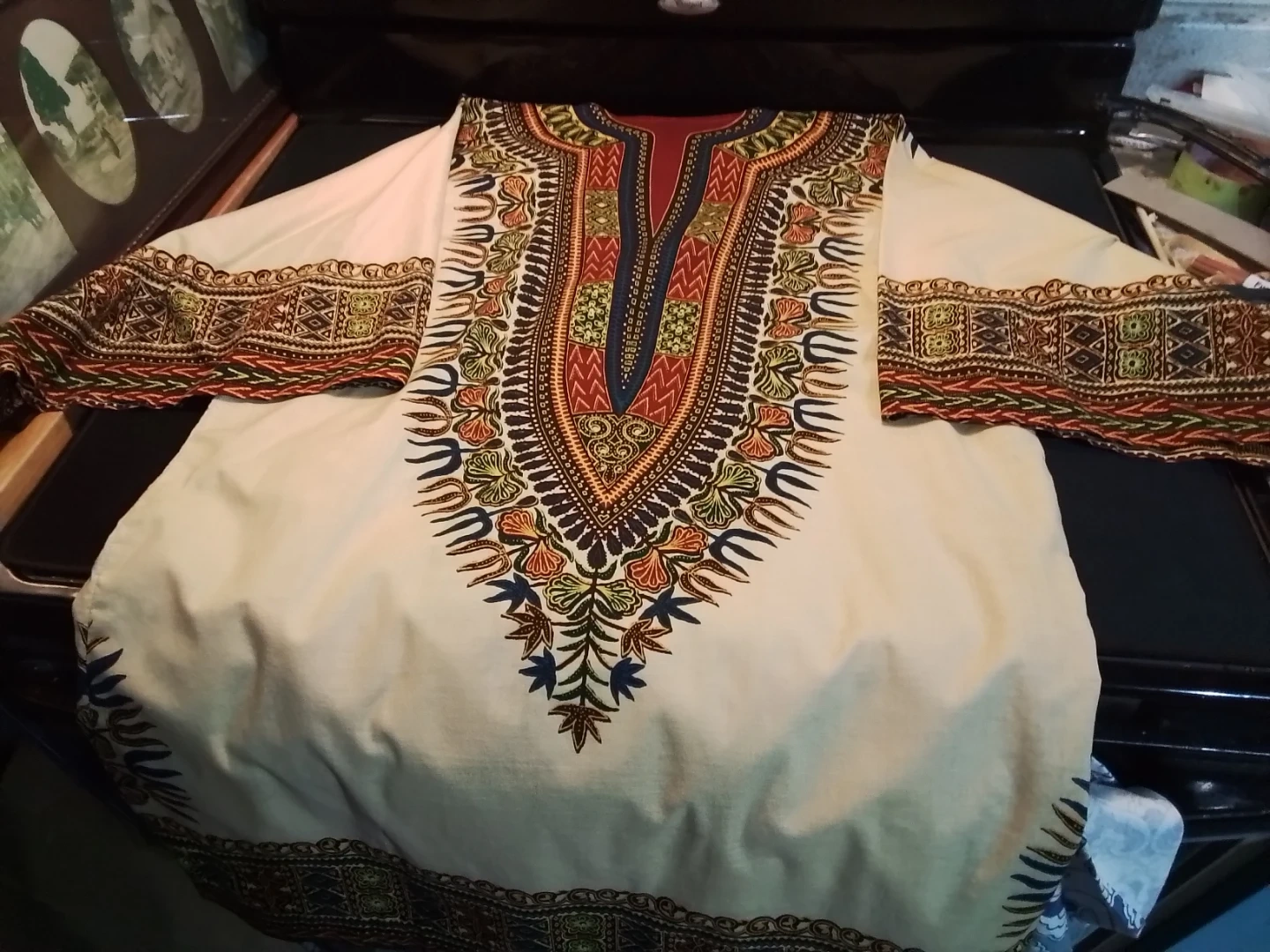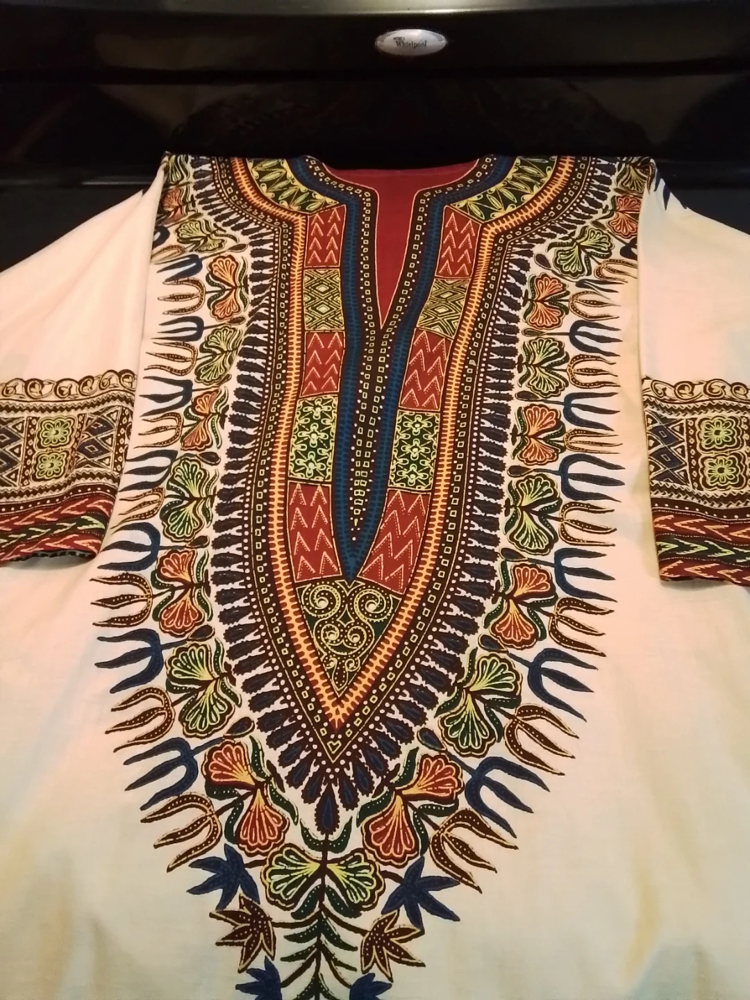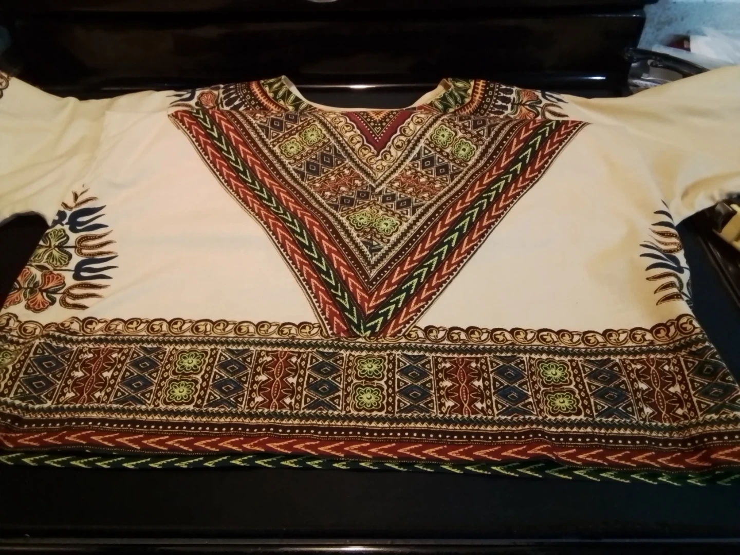 Selling a Modesto Garments Dashiki from Kingston Jamaica. It's a size M with a unique and colourful design. Perfect for adding a vibrant touch to your wardrobe!